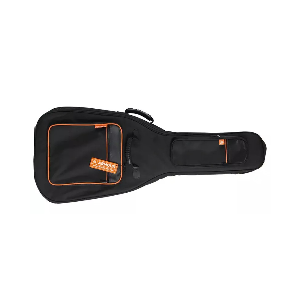 Armour ARM 3500C je povlak na klasickou (španělskou) kytaru ve velikosti 4/4 s extra masivním 30 mm polstrováním, které nabídne vašemu nástroji kompletní ochranu. Nabízí voděodolný materiál 600D a atraktivní černý design s oranžovými prvky. Je vybaven masivními 10 mm zipy, vnější kapsou na příslušenství, podporou krku nástroje, gumovým držadlem a spodní gumovou ochranou nástroje při postavení povlaku. K přenášení nástroje v povlaku můžete využít ucho, ramenní popruhy, nebo jej můžete nosit jako batoh na zádech.