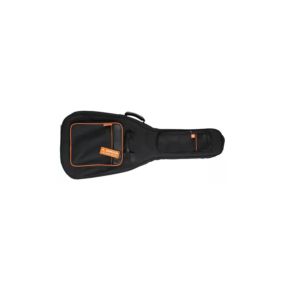 Armour ARM 3500G je povlak na elektrickou kytaru s extra masivním 30 mm polstrováním, které nabídne vašemu nástroji kompletní ochranu. Nabízí voděodolný materiál 600D a atraktivní černý design s oranžovými prvky. Je vybaven masivními 10 mm zipy, vnější kapsou na příslušenství, podporou krku nástroje, gumovým držadlem a spodní gumovou ochranou nástroje při postavení povlaku. K přenášení nástroje v povlaku můžete využít ucho, ramenní popruhy, nebo jej můžete nosit jako batoh na zádech.