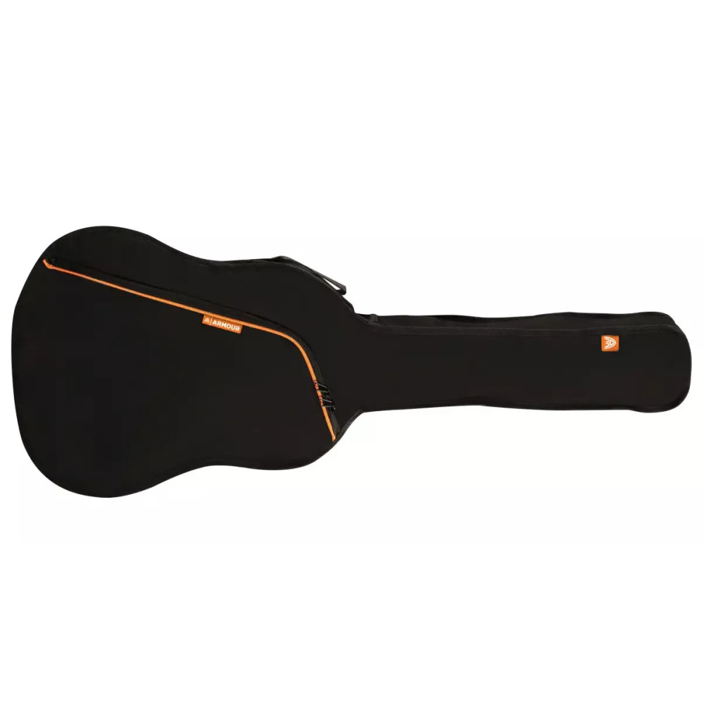 Armour ARM 350JNR je povlak na menší akustickou (westernovou) kytaru, například na Ashton Mini20. Nabízí voděodolný materiál 600D a atraktivní černý design s oranžovými prvky. Je vybaven 8 mm zipy a vnější kapsou na příslušenství. K přenášení nástroje v povlaku můžete využít ucho, ramenní popruhy, nebo jej můžete nosit jako batoh na zádech. Polstrování 5 mm zajistí ochranu vašeho nástroje před poškozením při běžném použití. Vnitřní rozměry pouzdra jsou 930 x 350 x 110 mm.