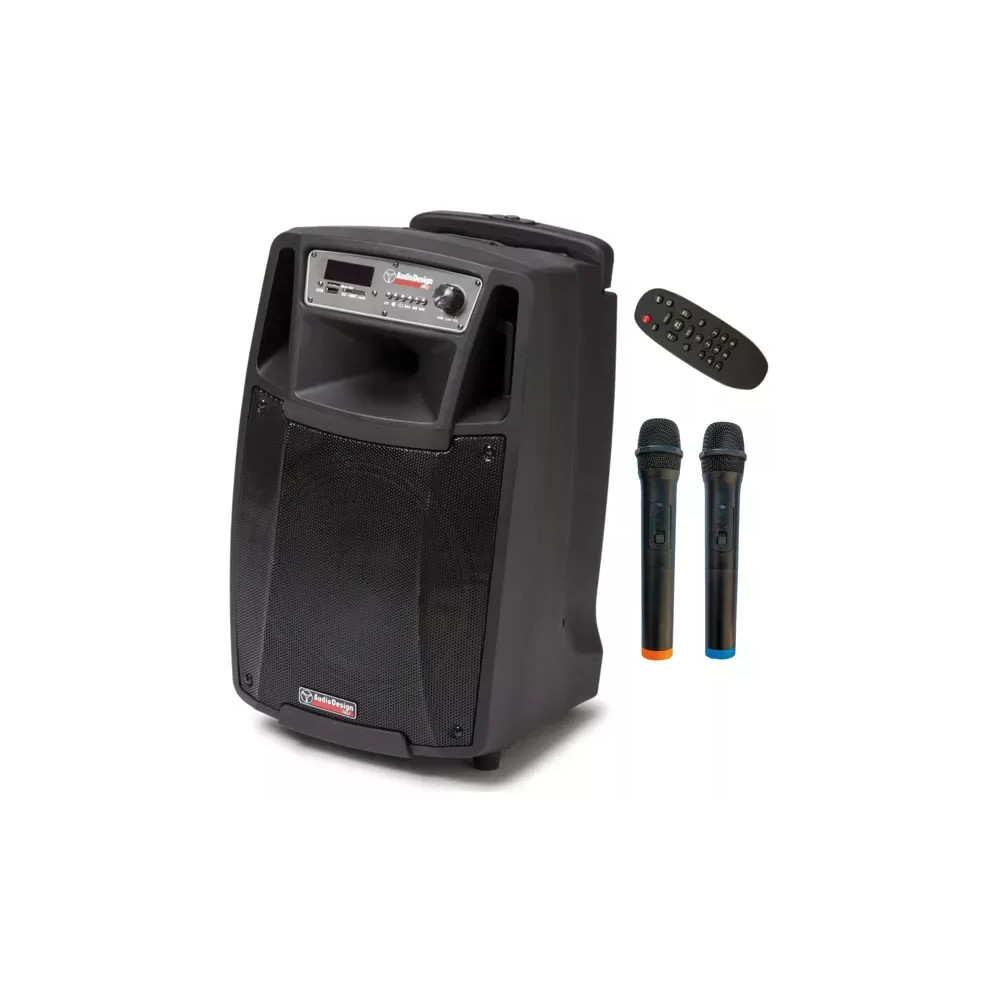 AudioDesign M2 10W/LUniverzální aktivní reprobox, který kombinuje kvalitní ozvučení, bohatou výbavu a maximální mobilitu. Díky výkonu 100 W RMS (až 300 W max) a 10" reproduktoru s výškovým driverem spolehlivě pokryje hudbou i větší prostory. Skvěle se hodí pro ozvučení akcí, menších koncertů, prezentací nebo venkovních aktivit.Reprobox je vybaven vestavěným přehrávačem podporujícím MP3/WAV soubory z USB a SD karet, Bluetooth připojením i FM rádiem. Součástí balení jsou dva bezdrátové mikrofony, které usnadní pořádání vystoupení, karaoke či prezentací. Vestavěný akumulátor zajistí až 8 hodin provozu bez napájení, a pokud potřebujete delší výdrž, lze připojit i externí 12V baterii.Velkou výhodou je funkce TWS (True Wireless Stereo), která umožňuje propojit druhý reprobox přes Bluetooth a rozdělit signál na levý a pravý kanál. To přináší výrazně širší stereo obraz a větší pokrytí prostoru.Pro snadnou manipulaci je box vybaven kolečky, teleskopickou rukojetí a možností uchycení na stojan. Robustní plastová konstrukce zároveň zajišťuje odolnost a nízkou hmotnost.