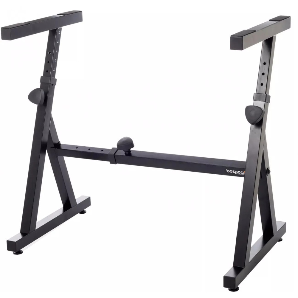 Bespeco KSXE je vysoce stabilní ocelový stojan pro klávesy nebo mixpult ve tvaru písmene Z s nastavitelnou výškou a šířkou. Výška stojanu je nastavitelná od 57 cm až po 85 cm, šířka je nastavitelná od 58 cm až po 93 cm. Lze jej tak využít jak pro malé keyboardy s rozsahem 61 kláves, až po velká stage piana s 88 klávesami. To umožňuje i jeho vysoká maximální nosnost, která je 80 kilogramů. Hmotnost stojanu je 6,2 kg. Černé barevné provedení. Připravil PJ