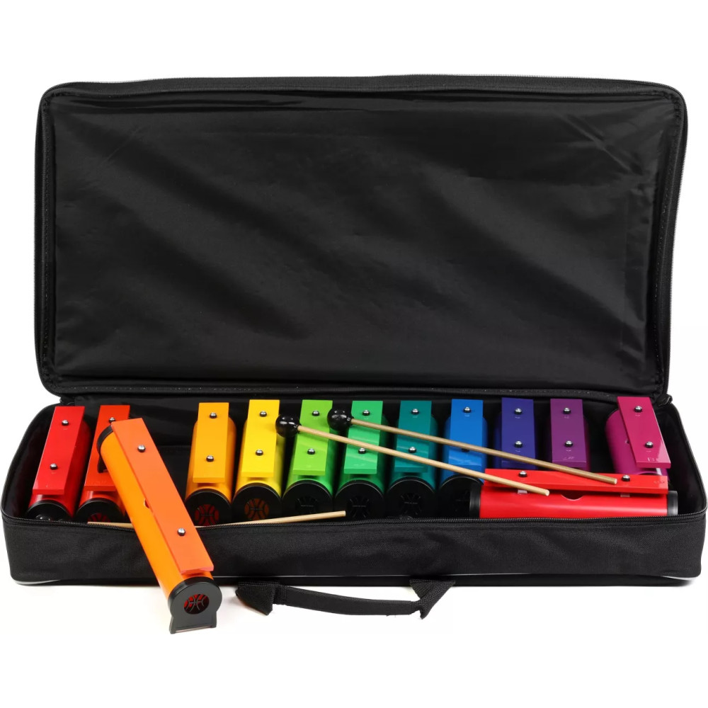 Boomwhackers Chroma-Notes Resonator Bells Complete Set je zvonkohra vyrobená z rezonančních trubek Boomwhackers doplněných o kovové kameny a obsahující 13 hracích kamenů. Díky této zvláštní konstrukci nabízí zcela unikátní zvuk zvonkohry. Nástroj lze používat buď jako jednotlivé kameny pro více hráčů, nebo jako zvonkohru či xylofon pro jednoho hráče. Ladění kamenů je následující: c2, c2#, d2, d2#, e2, f2, f2#, g2, g2#, a2, b2, h2, c. Součástí dodávky je také 13 paliček a pouzdro na uložení celého kompletu. Vyrobeno ve Spojených státech amerických. Připravil PJ