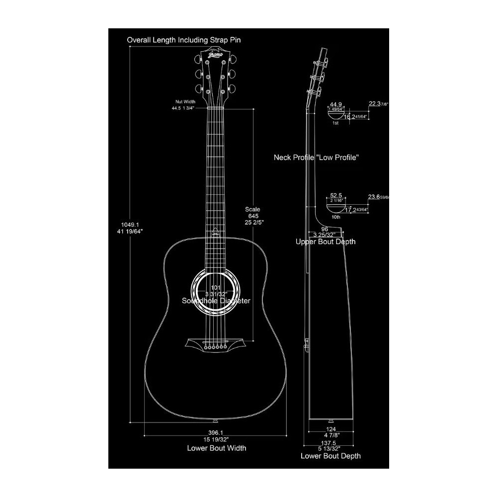 Bromo Guitars BAT1 NS je akustická kytara westernového typu s tělem tvaru dreadnought ze série Solid Top. Nástroj je osazen přední deskou z masivního smrku, luby a zadní deska jsou z mahagonu. Hmatník a kobylka jsou z amara ebenu, který je pouze barevně lehce odlišný od klasického ebenu a roste pouze v Indonésii, odkud také tyto kytary pocházejí. Nabízí skvělou tvrdost, tvarovou stabilitu a také zajímavou čokoládově hnědou barvu. Na zvuku se také nemalou měrou podíli speciální patentované žebrování Tone Flow. Díky tomu, může přední deska mnohem více rezonovat. Zvuk je pak hlasitější a s větší porcí basů a výšek. Barevné provedení je Natural Satin (NS) - přírodní matné.