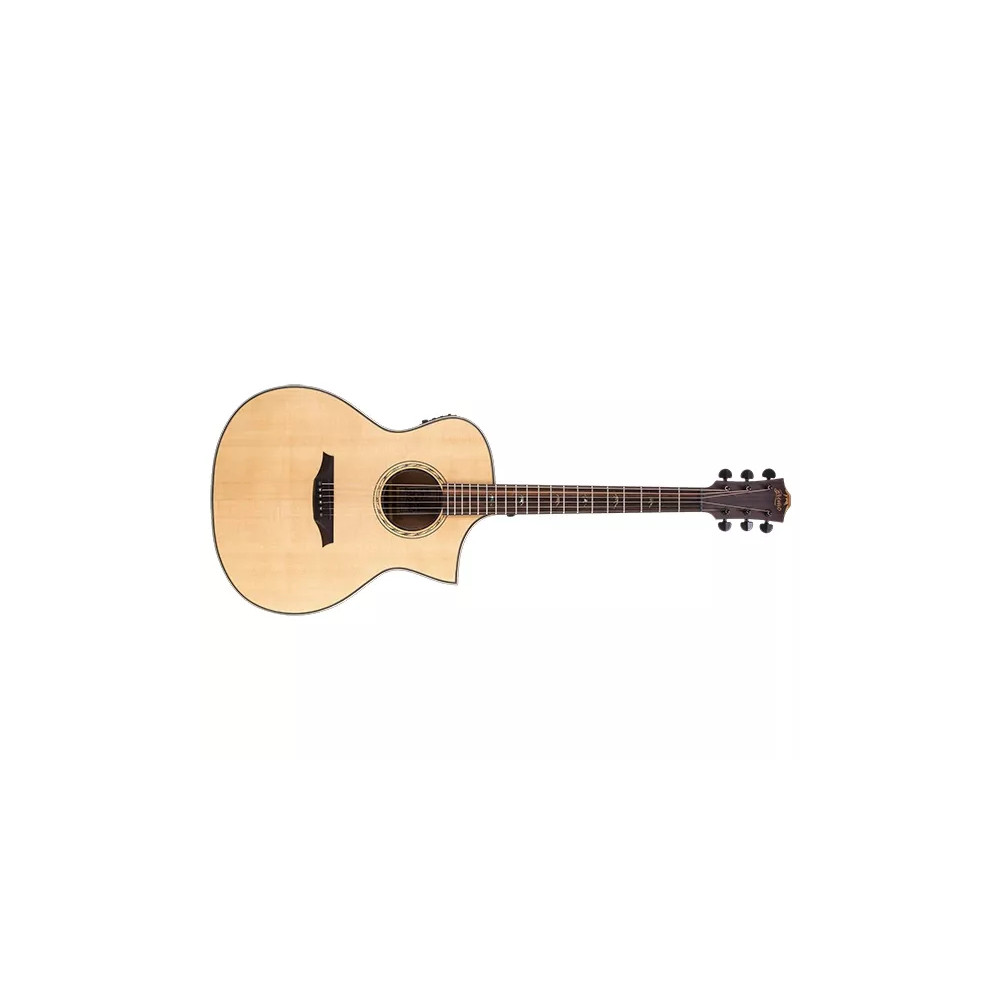Bromo Guitars BAT4CE NS je elektroakustická kytara westernového typu s tělem tvaru Hillside Auditorium s výřezem ze série Tahoma. Nástroj je osazen přední deskou z masivního smrku, luby a zadní deska jsou z mahagonu. Hmatník a kobylka jsou z amara ebenu, který je pouze barevně lehce odlišný od klasického ebenu a roste pouze v Indonésii, odkud také tyto kytary pocházejí. Nabízí skvělou tvrdost, tvarovou stabilitu a také zajímavou čokoládově hnědou barvu. Na zvuku se také nemalou měrou podíli speciální patentované žebrování Tone Flow. Díky tomu, může přední deska mnohem více rezonovat. Zvuk je pak hlasitější a s větší porcí basů a výšek. Snímač a elektronika jsou Bromo BZP1 se 4pásmovým ekvalizérem a vestavěnou ladičkou. Barevné provedení je Natural Satin (NS) - přírodní matné.