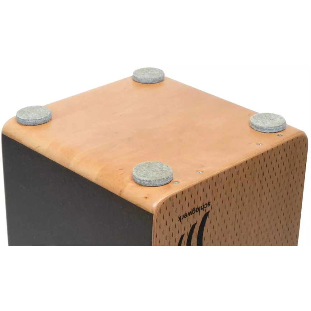 Schlagwerk CP4901 Evo Nature je cajon z řady La Perú. Je vyroben s masivní kouřovou olšovou horní a dolní deskou a SPL boky, zadním z břízy a předním z gabonu. Přední deska SC6 je napůl lepená a napůl šroubovaná, což je typické pro řadu La Perú. Přední deska je také částečně zhuštěná pro vylepšení citlivosti při hře. Výsledkem je neporovnatelný atak a možnost ovládání zvuku. Olšovo/SPL tělo nabídne kontrolované basy, zatímco 2 x 4 pružiny snaru vytvářejí bohatý, ale ultra přesný snare efekt. Každá z částí strunění je samostatně laditelná. To vše dělá z La Perú Evo vysoce univerzální nástroj, vhodný do každého druhu hudby. KabinetTělo cajonu je vyrobeno z SPL, břízy a s horní a dolní deskou z masivní olše. Navíc je na hranách opískováno a zakulaceno pro optimální hru rukama a pohodlný hrací komfort. Kabinet je doplněn o filcové pogumované nožky pro perfektní absorpci vibrací a to, že nástroj při hře neklouže po podlaze. Hrací deskaObě hrací desky jsou SC6 se špičkovým laminováním a extra tenkým povrchem pro širokou dynamiku hry a široký frekvenční rozsah zvuku. Série Cajon la PerúSérie Cajon la Perú představuje moderní tón a zvuk cajonu. Nabízí také špičkovou kvalitu a definici zvuku, díky mnohonásobnému testování. StruníkSérie Cajon la Perú je vybavena speciálně vyvinutým struníkem, jehož jednotlivé zvuky lze vyladit pomocí ladících šroubů v základně nástroje. SedákVšechny cajony mají speciální, pískovanou povrchovou úpravu sedáku, která zaručuje dobrý a pevný posaz na nástroji. Made in GermanyVšechny cajony Schlagwerk jsou vyráběné v Německu. Specifikace Schlagwerk CP4901 Evo Natural Řada: Cajon La Perú Hrací deska: SC6, lamino Design: ražene vlnky Resonanční skříň: SPL/masivní olše Rozměry: 30 x 30 x 50 cm Struník: technologie La Perú, 2 x 4 pružiny Tlumič: ano, vnitřní Muffle Pad Výroba: Německo Připravil PJ