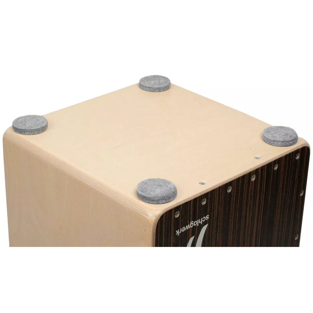 Schlagwerk CP5002 Precise OS Dark Santos je cajon z řady OS (Open sound and fully Screwed) s otevřeným zvukem a plně šroubovanou přední hrací deskou. Hrací deska je vyrobena z buku s dýhou ze dřeva Dark Santos. Resonanční skříň má krásně zaoblené hrany a je vyrobena z 8 vrstev bukového dřeva se zadní deskou z břízy. Rozměry cajonu jsou 30 x 30 x 50cm. Modely řady Precise OS nabízejí široký dynamický rozsah, od velmi jemného, delikátního snare efektu, který při silnější hře přechází do zaobleného zvuku s velmi dobře vyváženými basy. Série Precise OSSérie Precise OS se vyznačuje tzv. otevřeným zvukem (OS - Open Sound) a plně šroubovanou přední hrací deskou. Během jejího vývoje byly pečlivě vyhodnoceny body pro umístění všech šroubů a tak vzniklo zcela inovativní umístění těchto šroubů. Výsledkem je na jedné straně extrémně přesná odezva snare a na straně druhé velmi otevření základní zvuk cajonu. Zesílením vnitřního žebrování boků cajonu došlo také k zesílení basů. StruníkSérie Precise OS vychází ze struníků řady la Perú, a je vybavena speciálně vyvinutým struníkem, jehož jednotlivé zvuky lze vyladit pomocí ladících šroubů v základně nástroje. SedákVšechny cajony mají speciální, pískovanou povrchovou úpravu sedáku, která zaručuje dobrý a pevný posaz na nástroji. PříslušenstvíSoučástí dodávky cajonu je i pohodlný, kožený podsedák SP20. Made in GermanyVšechny cajony Schlagwerk jsou vyráběné v Německu. Specifikace Schlagwerk CP5002 Precise OS Dark Santos Řada: Precise OS Hrací deska: plně šroubovaná Design: Dark Santos Resonanční skříň: 8 vrstev, buk Zadní deska: bříza Rozměry: 30 x 30 x 50cm Struník: la Perú, nastavitelné pružiny Příslušenství: podsedák SP20, ladící klička Výroba: Německo Připravil PJ
