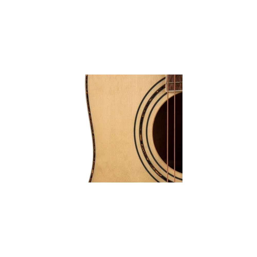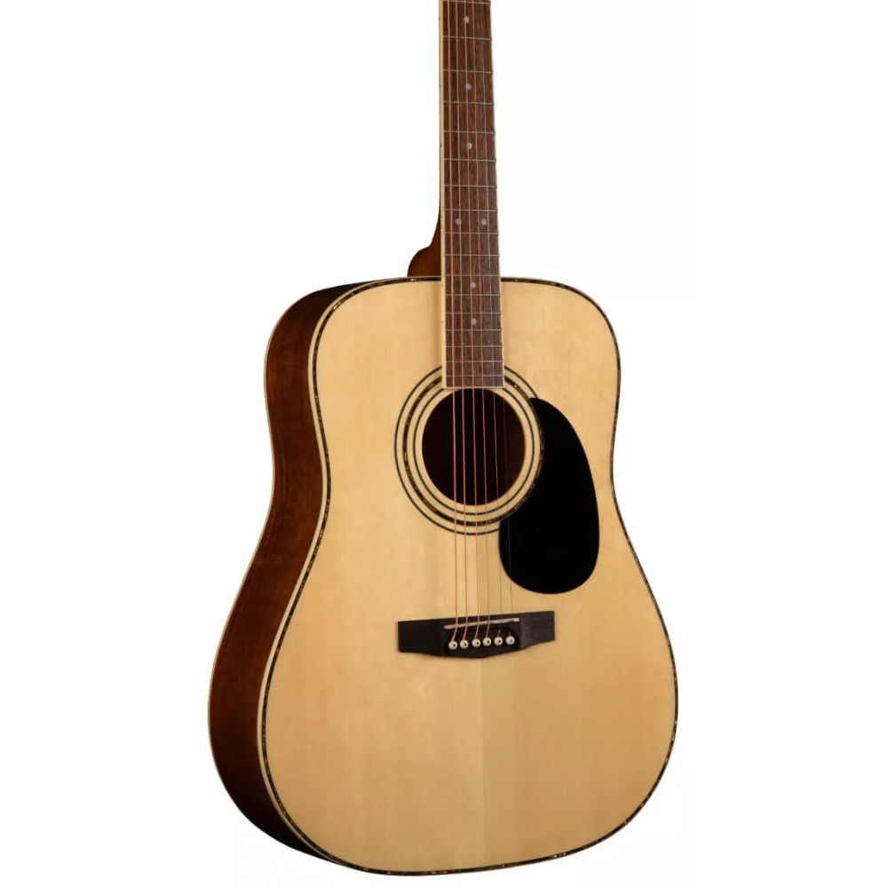 Cort AD 880 NS je akustická kytara z nejstarší akustické řady Standard, která definuje vynikající výkon a hodnotu za rozumné peníze. Kytary Standard Series jsou cenově dostupné, ale nabízejí solidní výkon pro začátečníky i amatéry v řadě modelů s různými typy funkcí pro každou herní situaci. AD880 má smrkovou vrchní desku, mahagonovou zadní desku a luby a vavřínový hmatník. Barevné provedení je Natural Satin - přírodní matné. Smrková vrchní deska Smrk poskytuje ideální rovnováhu mezi pevností a flexibilitou, a proto je jeho drtivá popularita jako dřeva volby pro desky akustických kytar. Díky všestrannému zvukovému charakteru je Spruce ideální pro různé hudební žánry a styly hraní. Mahagonové luby a záď Světlé, ale přirozené se silným a teplým středem, milované mahagonové dřevo je standardem pro zadní a boční strany na prémiové akustice po mnoho desetiletí. Specifikace Typ: Akustická kytara Tvar těla: Dreadnought Vrchní deska: smrk Zadní deska a luby: mahagon Luby: mahagon Krk: mahagon Tvar krku: C Hmatník: merbau Kobylka: fíkovník Vykládání těla: černé Šířka nultého pražce: 43 mm Rádius krku: 400 mm Mensura: 648 mm Počet pražců: 20 Roseta: vícevrstvá tiger acryl Pickguard: černý Ladící mechaniky: litinové Žebrování: Advanced X-bracing Struny: potahované Barva: Natural Satin - přírodní matná Pouzdro: ne Připravil PJ