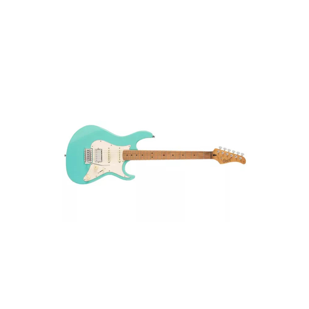 Cort G200SE SFG Elektrická kytara, která kombinuje klasický design s moderními prvky pro skvělý herní komfort a univerzální zvuk. Díky tělu z topolu nabízí lehkou konstrukci a vyvážený tón. Krk i hmatník z žíhaného javoru dodávají kytaře jas, pevnost a odolnost vůči vlhkosti, přičemž zaručují příjemný herní pocit a stabilní ladění.Konfigurace snímačů H-S-S (humbucker u kobylky a single-coily ve střední a krkové pozici) zajišťuje široké zvukové možnosti — od čistých tónů až po silný rockový drive. Kytara je osazena 6bodovým vintage tremolem, které umožňuje jemné vibrato efekty bez ztráty ladění. Elegantní chromovaný hardware podtrhuje celkový vzhled nástroje, zatímco výrazná barva Seafoam Green mu dodává svěží retro styl.