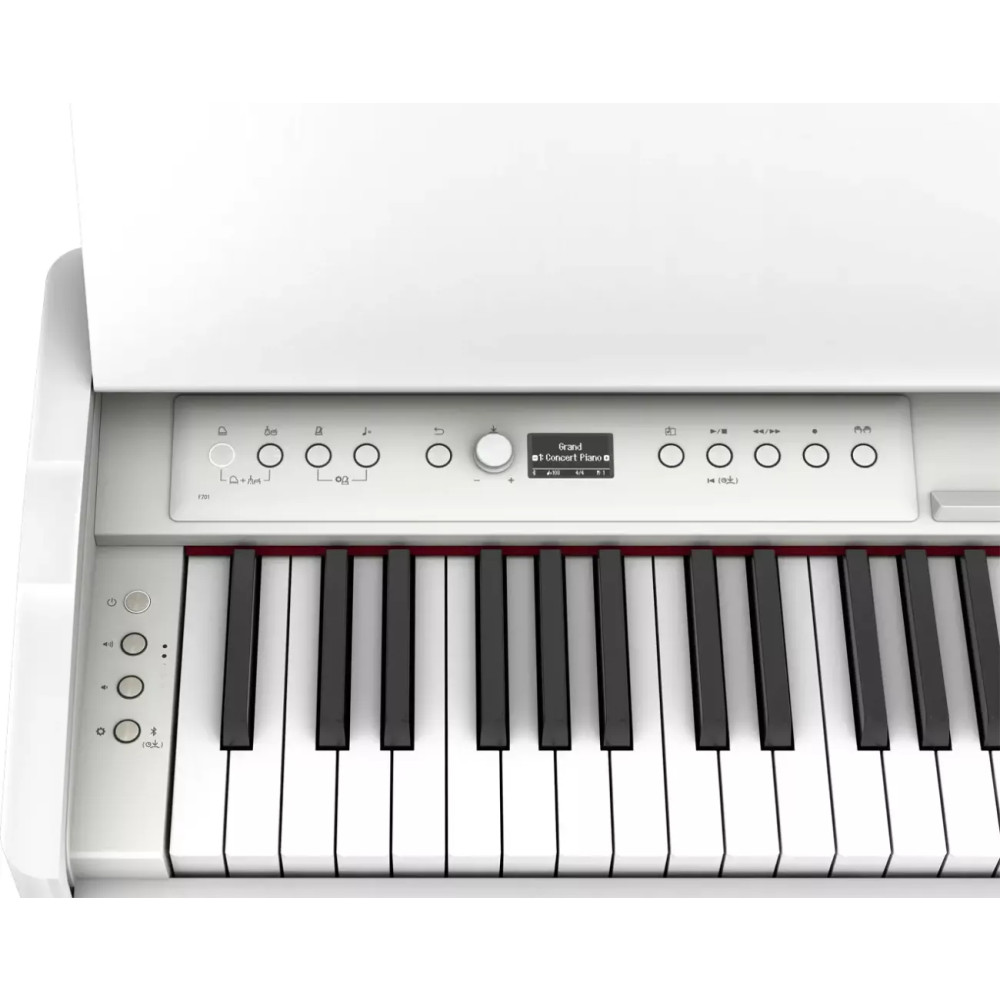 Roland F701Pokud hledáte nový koníček nebo jen chcete začít znovu hrát a chcete nástroj, který odpovídá vašemu stylu, toto piano je naprosto ideální. Zatímco tradiční piana nemají moderním vybavení, F701 je vyrobena s ohledem na současný technologie a nabízí stylovou, decentní skříň a kompaktní velikost, která se snadno vejde do menších prostor. Pokud potřebujete kvalitní klavír do domácnosti, učebny nebo na koncerty Roland F701 je správná volba. Tento digitální klavír má výjimečný zvuk a charakter v elegantním a stylovém kabinetu, který skvěle zapadne do vašeho interiéru. Speciálně navržený vestavěný ozvučovací systém vytváří bohatý a podmanivý zvuk s dostatečnou projekcí pro menší koncertní prostory. Rozšířená zvuková výbava poskytuje skvělý základ pro hraní různých hudebních stylů. Moderní technologie Bluetooth umožňuje bezdrátové spojení s vaším tabletem nebo smartphonem a zvýšení efektivity vašeho cvičení s aplikací Roland Piano Every Day. F701 nabízí skutečně výjimečnou hodnotu - nástroj se špičkovým zvukem klavíru k dostání ve třech barevných variantách. Špičkový zvuk a klaviatura ve snadno přenosném formátuPři navrhování přenosného klavíru často dochází ke kompromisům v kvalitě zvuku a klaviatury. To není případ F701. Je vybaven nejlepšími technologiemi Roland se špičkovým zvukem a dynamickým charakterem, který uspokojí i náročné pianisty. Zvukový procesor SuperNATURAL Piano má dynamické a expresivní vlastnosti akustického grand piana, s příjemnými a komplexními harmonickými změnami, které přirozeně jdou za vaším hraním. S nadprůměrnou polyfonii 288 hlasů můžete do sytosti využívat Damper pedál a dosáhnout autentický zvukový projev i při hraní komplikovaných skladeb. Nad tím vším stojí klaviatura PHA-4 s povrchovým provedením Ivory Feel a nejnovější technologií snímání, která dokonale přenese do zvuku i ty nejjemnější doteky. Vestavěný ozvučovací systém, připravený na koncertyVestavěný reprosystém ve většině přenosných klavírů má výrazné omezení a dokáže poskytnout uspokojivý zvuk pouze pro hraní a cvičení doma. Díky sofistikovanému designu, odvozenému z vlajkového modelu FP-90, dokáže F701 hrát "velkým" zvukem, který se krásně rozléhá v menších koncertních prostorech. Nebudete potřebovat externí ozvučení. Reproduktory a integrovaný zesilovač jsme pečlivě vyladili pro precizní reprodukci všech zvukových detailů. Přímo v kabinetu klavíru jsou speciální ozvučnice, které mu dodají bohatý zvuk s výjimečným dynamickým rozsahem. S praktickým třípásmovým ekvalizérem můžete upravit zvukový charakter tak, aby dokonale ladil s akustikou místnosti. Pro noční dříče tu jsou připraveny dva sluchátkové výstupy (ideální pro čtyřručku) s prostorovým 3D zvukem. Velká paleta zvuků pro jakýkoliv hudební stylI v případě, že většinou hrajete klasiku, občas se vyskytnou situace, kdy potřebujete vytáhnout i jiné zvuky a přizpůsobit se různým skladbám nebo stylem. F701 to zvládá - s velkým výběrem profesionálních zvuků elektrického klavíru, smyčcových nástrojů, varhan a syntezátorů máte dostatečné zvukové možnosti pro téměř jakýkoli hudební styl. Vaše oblíbené zvuky si dokonce můžete uložit, spolu s dalšími parametry (Layer, Split) v 30 uživatelských registracích, a kdykoli se k nim vrátit. Na ovládacím panelu jsou v pohodlném dosahu ovladače UPPER a LOWER, kterými můžete kdykoli upravit vyvážení zvolených zvuků. Připojte váš smartphone nebo tablet přes Bluetooth a rozšiřte vaše kreativní možnostiPraktická Bluetooth konektivita umožňuje spojení F701 s vaším smartphonem nebo tabletem a změní způsob, jakým jste dosud hráli a cvičili. Můžete pohodlně přehrávat hudbu přes reprosystém klavíru - skvělé pro domácí cvičení nebo hraní v doprovodu připravených nahrávek. Po nainstalování bezplatné aplikace Roland Piano Every Day do vašeho tabletu je to ještě lepší - aplikace vám poskytne hudební doprovod v různých žánrech, které inteligentně sledují hrané akordy. F701 podporuje i MIDI přenos přes Bluetooth a umožňuje nahrávání a produkci s GarageBand pro iOS a jinými hudebními aplikacemi. Elegantní a atraktivní v každé situaciF701 je nabitý nejnovější technologií a praktickými funkcemi, které ocení zejména často hrající hudebníci. Jeho design je jednoduchý a efektivní. Stylové a elegantní provedení je inspirováno klasickým akustickým pianem. Prostřednictvím trojitého pedálu můžete při hraní využívat všechny běžné pedálové techniky. Součástí balení je držák sluchátek a stabilizátor.