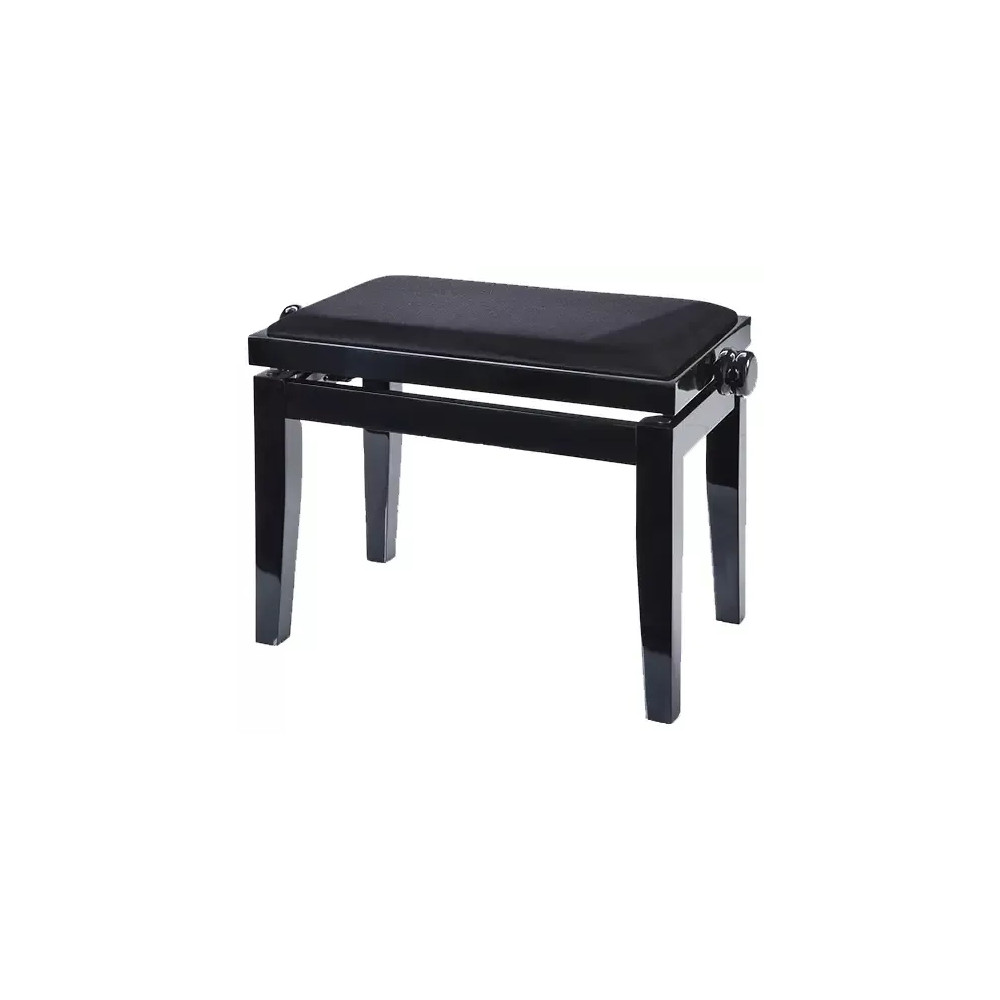 Discacciati KD20-PE černý lesk/černý vinyl je výškově stavitelná stolička s polstrovaným sedákem z materiálu vinyl a rovnýma nohama. Je vhodná pro všechny typy digitálních pian, kláves nebo keyboardů. Možnost nastavení výšky stoličky v rozmezí 47 až 57 cm. Stolička je bytelná a má spolehlivou konstrukci a kvalitní zdvihací mechanismus. Sedák je obdélníkový o rozměrech 55 x 32 cm. Barva dřeva je černý lesk, barva sedáku je černý vinyl. Vyrobeno v Itálii.