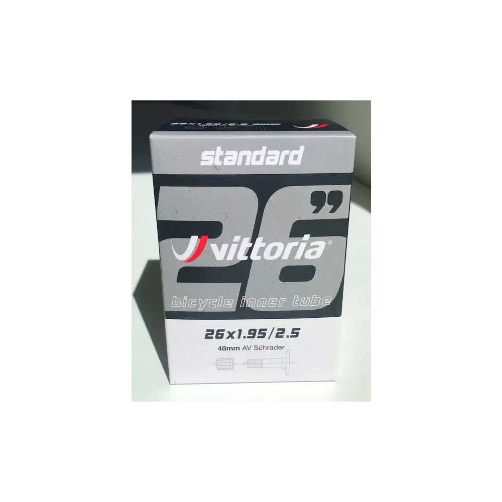 Klasická butylová duše MTB Standard od značky Vittoria o rozměrech 26x1.95/2.50 AV schrader 48mm.