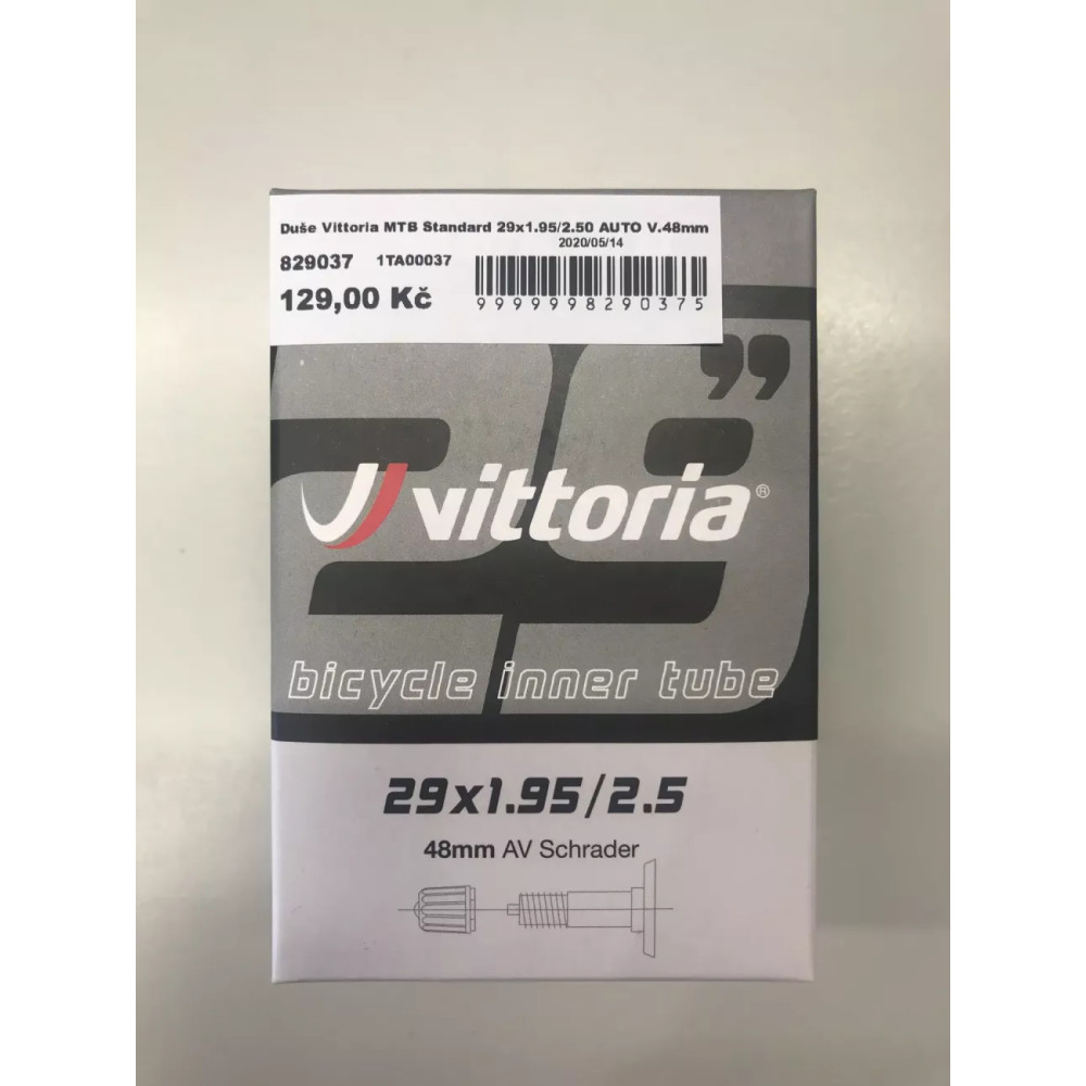 Klasická butylová duše MTB Standard od značky Vittoria o rozměrech 29x1.95/2.50. Ventilek má auto, 48 mm. Zpracovala MG.