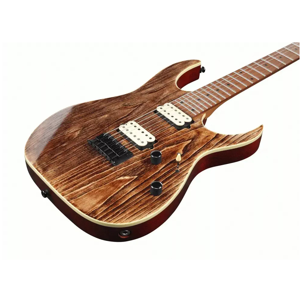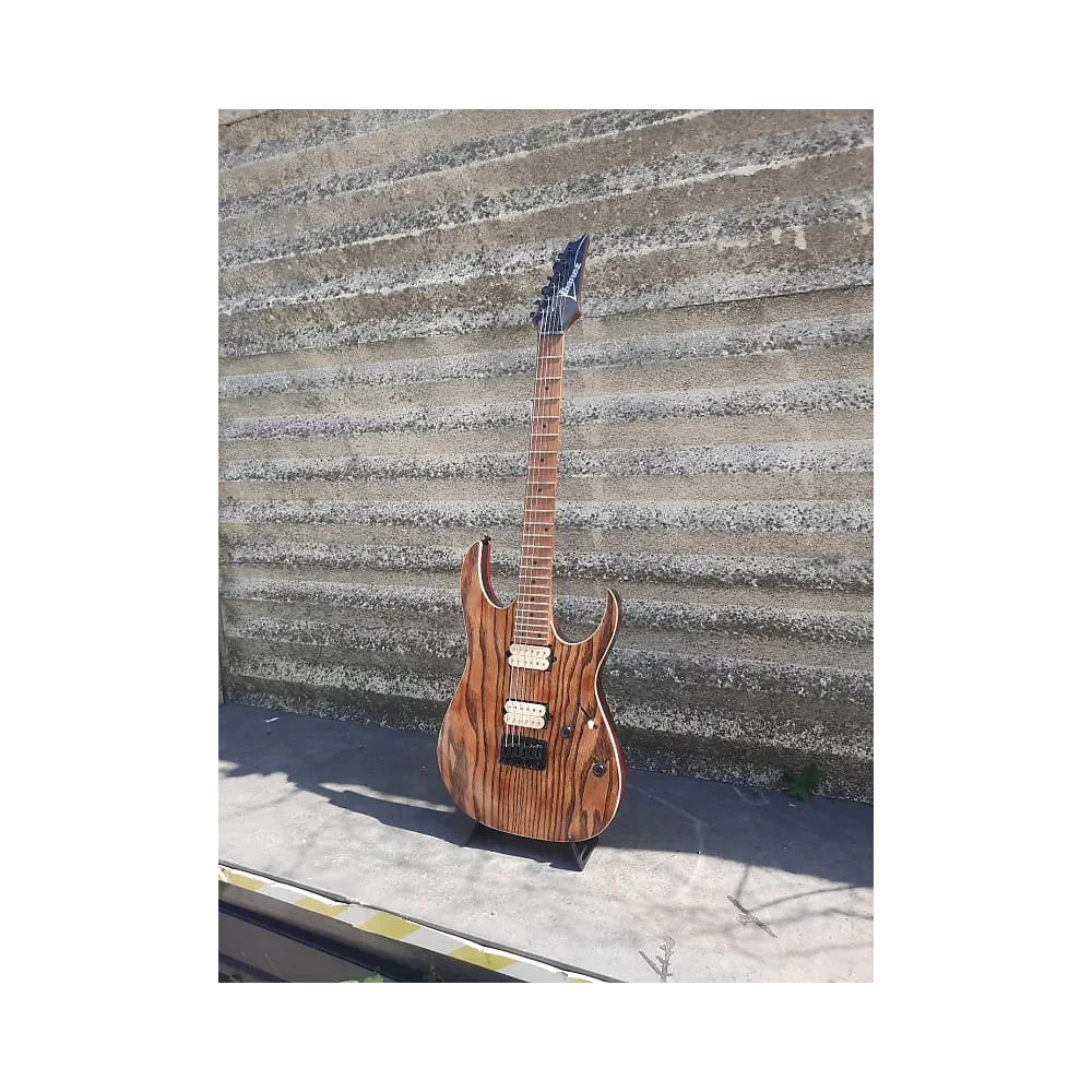 Ibanez RG421HPAM-ABL Elektrická kytara typu superstrat (nebo také double cut, což vychází ze dvou výřezů v těle nástroje, díky kterým se můžete skvěle dostat i do vyšších poloh na hmatníku). Tenký a plochý krk s profilem Wizard III i již zmíněný hmatník jsou z javorového dřeva, což dodává kytaře ostrý a jasný zvuk se silnými středy. Hmatník je osazen 24 pražci a šířka nultého pražce je 43 mm. Rádius krku je 15,75".Tělo nástroje je ze dřeva Nyatoh s jasanovým topem s kresbou dřeva v barvě Antique Brown v pololesklém provedení.O ozvučení se starají pasivní snímače Di-Marzio The Tone Zone a Di-Marzio Air Norton, které jsou skvělé na rychlé metalové riffy. Kobylka je pevná typu F106 a umožňuje strunám průchod skrz tělo, což má za následek plnější a delší sustain. Specifikace: Model: Ibanez RG421HPAM-ABL Krk typ: Wizard III Krk materiál: Javor Menzura: 648 mm Tělo materiál: Nyatoh Hmatník materiál: Javor Pražce: Jumbo Počet pražců: 24 Kobylka: F106 bridge Snímače: 1x DiMarzio The Tone Zone, 1x DiMarzio Air Norton Struny: D’Addario EXL110 (.010/.013/.017/.026/.036/.046) Barva: Antique Brown Stained Low Gloss Připravil JH