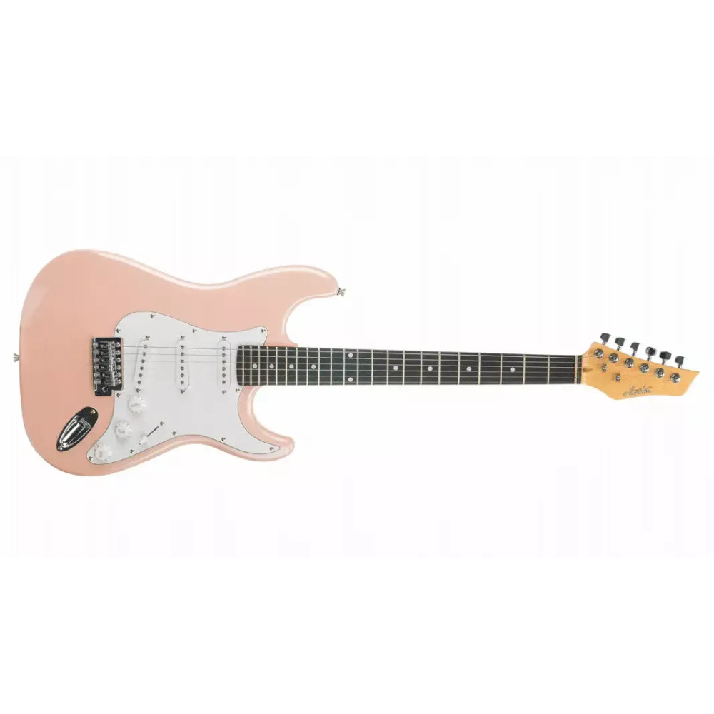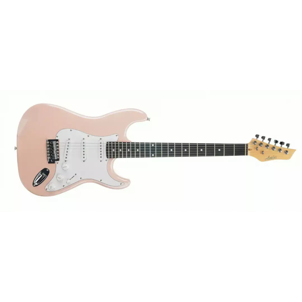 Ashton AG232 PK PackPaket elektrické kytary, povlaku, řemenu, kabelu a online lekce hry na kytaru (v anglickém jazyce). Ashton AG 232 PK je elektrická kytara s tradičním tělem ve stylu Stratocasteru se třemi jedno cívkovými snímači Single Coil. Výborný nástroj pro začátečníky. Tělo kytary je z topolu, krk z javoru a hmatník ze SmartWoodu. Kytara je osazena 22 pražci, menzura je 25,5“. Pro nastavení zvuku můžete využít potenciometr hlasitosti Volume, 2x tónovou clonu Tone a 5 polohový přepínač. Barevné provedení: PK (Metallic Pink). Specifikace Ashton AG232 PK Pack Paket obsahuje: elektrickou kytaru AG232 PK, povlak ARM 200G, řemen, kabel a online lekci Model elektrické kytary: Ashton AG232 PK Tvar těla: ST (Stratocaster) Tělo: Topol Krk: Javor Hmatník: SmartWood Počet pražců: 22 Mensura: 25,5" Hardware: chrom Snímače: S/S/S – 3x Single Coil Ovladače: 5 polohový přepínač snímačů, hlasitost, 2x tónová clona Pickguard: bílý Barva: PK (Metallic Pink) Připravil JH