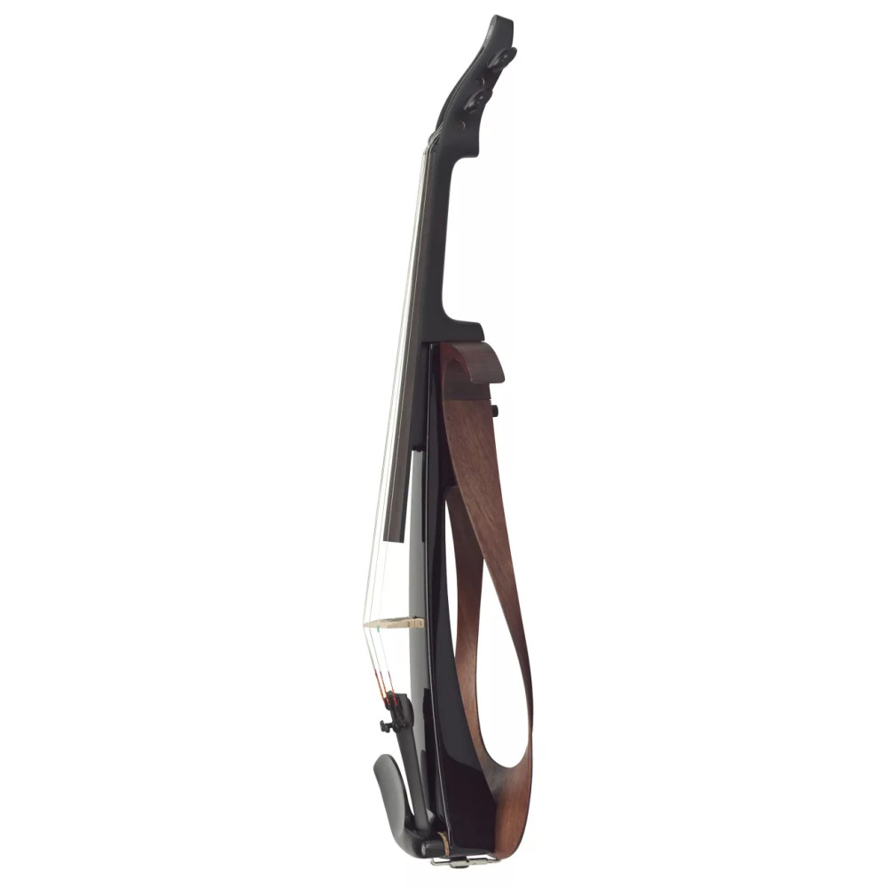 Yamaha YEV 104BL jsou čtyřstrunné elektrické housle s úžasným designem. Pokročilá technologie zpracování dřeva firmy Yamaha vyústila v nově vyvinutou a vytvořenou generaci elektrických houslí, které kombinují průkopnickou krásu s výborným výkonem při živém vystupování a potenciálem. Je to vynikající volba pro milovníky hudby, kteří hledají nástroj umožňující prozkoumat a potěšit se žánry mimo hranice klasické hudby. Barevné provedení je Black (BL) - černé. DesignKombinace průkopnické krásy a hratelnosti nabízí nové možnosti hry. Impresivní elegantní design pro pódiaDesign ve stylu Möbiovy pásky nabízí spojení mezi přední a zadní stranou. Tří rozměrný tvar je vytvořen, aby upoutal pozornost obecenstva při živém vystupování. Jednoduchý přechod z tradičních akustických houslíStejný tvar jako u akustických houslí je schopen pojmout i standardní ramenní opěrky, podbradky a struníky a proto usnadňuje přechod mezi akustickými a elektrickými houslemi. Přírodní materiály vylepšují pocit ze hryPovrchová úprava završuje vylepšení přirozené krásy použitých materiálů (NT model). ZvukPřirozený zvuk a odezva YEV-104 umožňuje hráči volně vytvářet svůj hudební výraz. LS tvar tělaPečlivě vybíraný javor, mahagon a smrk v pěti vrstvé konstrukci umožňuje vytvářet vynikající odezvu a přirozený celkový zvuk nástroje.* Černý model využívá stejné konstrukce, pouze vrstvy nejsou viditelné. RámPěti vrstvý olejovaný ořechový rám nabízí ideální mix mezi flexibilitou a silou v designu, který není pouze krásný na pohled, ale také se podílí na přirozených hudebních resonancích. SnímačByl použit stejný typ vysokovýkonného pasivního kobylkového snímače jako u oceňovaného modelu Silent houslí SV250. Nejenže efektivně snímá zvuk celého nástroje, ale také zachycuje odezvu nástroje a výrazové nuance hry smyčce používané hráčem. PřepínačVolí buď přímý výstup snímaného signálu nebo výstup přes ovladač hlasitosti nástroje. Přímý výstup nabízí plný zvukový potenciál nástroje s bohatými basy a velkým důrazem. Specifikace Velikost: 4/4 Materiál těla: Smrk/Mahagon/Javor Materiál rámu: Ořech Materiál krku: Javor Materiál hmatníku: Palisandr Kobylka: Javor s vestavěným piezoelektrickým snímačem Ladící kolíky: Eben Struník: Syntetická pryskyřice (vybavený jemnými dolaďovači) Podbradek: Eben Struny: D’Addario Zyex Snímač: Kobylka s vestavěným piezoelektrickým snímačem Ovladače: Hlasitost, Přepínač výstupu (přepínač aktivace ovladače hlasitosti) Výstup: Pasivní výstup (6,3 mm standardní mono jack) Barevné provedení: Black (BL) - černé Rozměry: 204 x 592 x 111 mm Hmotnost: cca. 560 g Připravil PJ