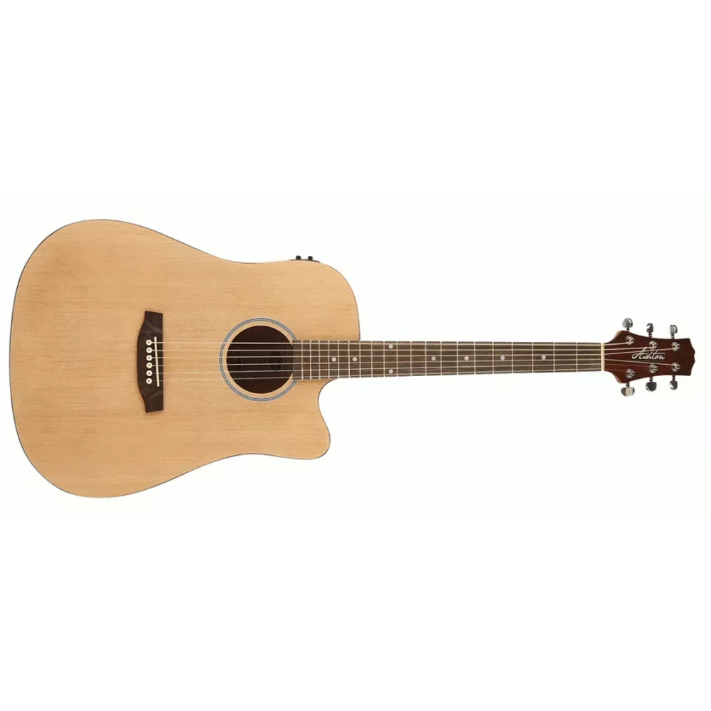 Ashton D20CEQ NT je elektro-akustická westernová kytara s vrchní smrkovou deskou a kovovými strunami. Jedná se o nástroj s tvarem těla dreadnought s výřezem a snímačem s předzesilovačem MG30. Má smrkovou vrchní desku a javorový krk s výztuhou, který je doplněn hmatníkem z materiálu SmartWood, který je pevnější a odolnější než palisandr, a je také méně náchylný ke změnám vyvolaným změnami vlhkosti prostředí. Mechanika nástroje je chromovaná. Výborný nástroj pro mírně pokročilé hráče a žáky hudebních škol. Specifikace Ashton D20CEQ NT Elektro-akustická kytara Tvar těla: Dreadnought s výřezem Tělo: vrstvené Přední deska: smrk Luby: lípa Záď: lípa Krk: javor Hmatník: SmartWood Kobylka: SmartWood Počet pražců: 20 Kobylka: palisandr Předzesilovač: Ashton MG30 Barva: NT - přírodní Připravil PJ