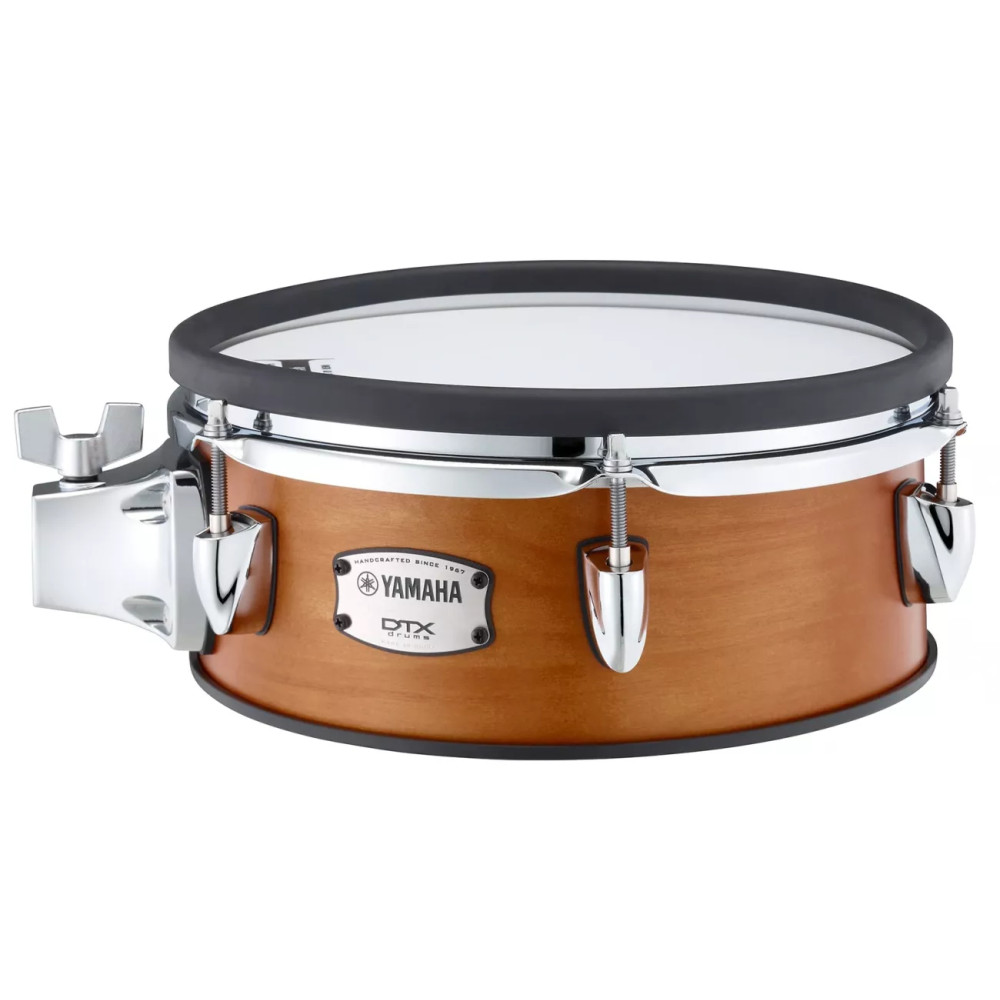 Yamaha XP 105T-M RW je 10palcový tom pad pro elektronické bicí sady se zcela novým designem, který využívá vysoce kvalitního korpusu z březové dýhy. Povrchová úprava je stejná jako u barevných povrchů profesionálních akustických bicích Yamaha. Hrací plochu tvoří dvouvrstvá síťovaná blána od firmy Remo. Byla speciálně navržena tak, aby poskytovala příjemně přesný pocit ze hry. Kromě toho jsou pady 2zónové, pro snímání úderu do blány a na ráfek. Korpusy jsou tvarovány a dokončovány v továrně na akustické bicí Yamaha a úchytky a ráfky jsou stejné, jaké se používají u akustických bicích Yamaha. Tyto pady jsou v každém ohledu stejně krásné jako akustické bicí Yamaha. Barevné provedení je Real Wood (RW) - přírodní. Specifikace Zóny: 2 (blána, ráfek) Hrací povrch: 2vsrtvá Mesh blána Remo Vhodné pro: Tom Držák tomu: ano Konektory: 1x stereo phone Průměr: 10" Rozměry: 322 x 297 x 117 mm Hmotnost: 1,89 kg Obsah balení: pad, 2x stereo phone kabel (čirý, černý) Připravil PJ