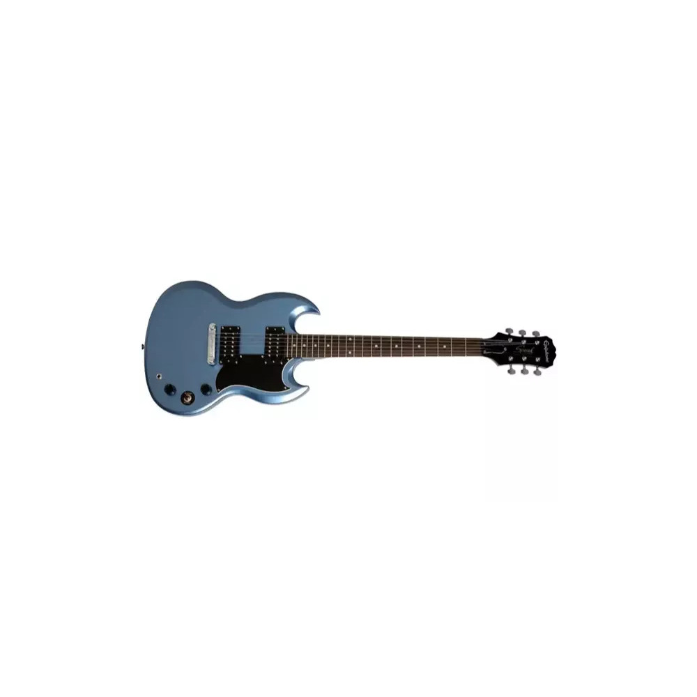 Epiphone SG Special-I PE Pelham BlueElektrická kytara z limitované edice, která spojuje klasický vzhled modelu SG s dostupností a spolehlivostí značky Epiphone. Je určena jak pro začátečníky, tak i pro pokročilé hráče, kteří hledají lehký, univerzální a stylově výrazný nástroj.Tělo i krk z mahagonu dodávají kytaře plný a vyrovnaný tón, zatímco palisandrový hmatník s 22 Medium Jumbo pražci a profilem krku ’60s SlimTaper D nabízí pohodlný úchop a snadný přístup i do vyšších poloh. Dvojice humbuckerů 650R a 700T poskytuje univerzální zvuk vhodný od blues a rocku až po tvrdší žánry. Stabilní ladění zajišťuje pevná kobylka Wraparound a ladicí mechaniky Deluxe sealed v chromovaném provedení.