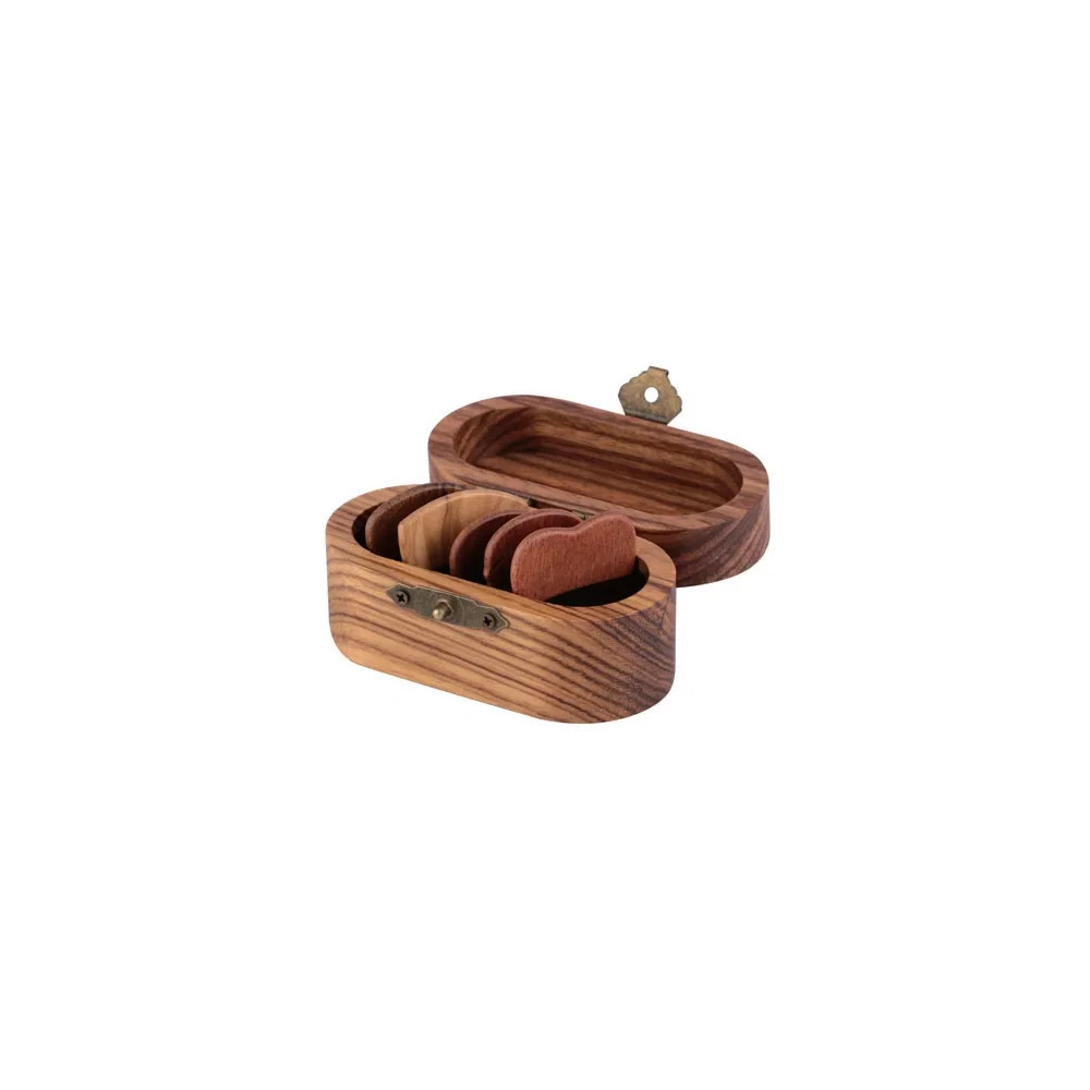 Fzone PC-12 Solid Wood je krásné designové pouzdro na trsátka z masivního dřeva. Pouzdro je vybaveno malinkým zámkem, takže nedojde k samovolnému otevření. Rozměry pouzdra jsou 80 x 40 x 40 mm. Trsátka nejsou součástí dodávky.
