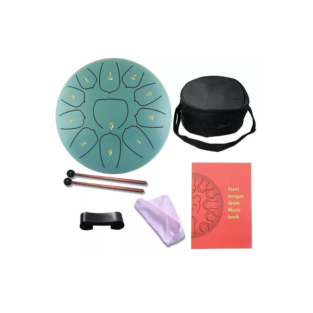 Fzone STD-10I11N Teal je takzvaný Steel Tongue Drum, což je perkusivní nástroj s melodickým a velmi zvláštním zvukem, charakteristickým například pro budhistické kláštěry. Tento model má průměr 10" (cca 25 cm) a je vyroben ze slitiny oceli a titanu se speciální ochrannou povrchovou úpravou proti odření a usazování nečistot. Do těla bubnu je vyříznuto 11 jazýčků pro jednotlivé tóny ve tvarů různých lístků. Při úderu paličky či ruky se celý „buben“ rozezní a díky své konstrukci vydává velmi harmonický, kulatý a jemný zvuk. Skvěle se tak hodí například při józe, relaxaci či meditaci. Své uplatnění ale nalezne jak u sólového hráče, tak i v rámci kapely. Díky jeho přirozenému ladění je navíc možné na něj hrát i bez znalostí hudební teorie, což umožní tento nástroj využívat například při výuce. V balení je také pouzdro, dvě paličky s gumovou hlavou, šest gumových náprstků a silikonová nožka pro lepší stabilitu bubnu. Barevné provedení je Teal (tyskysová). Specifikace Průměr bubnu: 10" (cca 25 cm) Počet tónů: 11 Ladění: C dur Materiál: slitina oceli a titanu Hmotnost: 1,5 kg Příslušenství: pouzdro, dvě paličky s gumovou hlavou, šest gumových náprstků a silikonová nožka Barva: Teal - tyskysová Připravil PJ