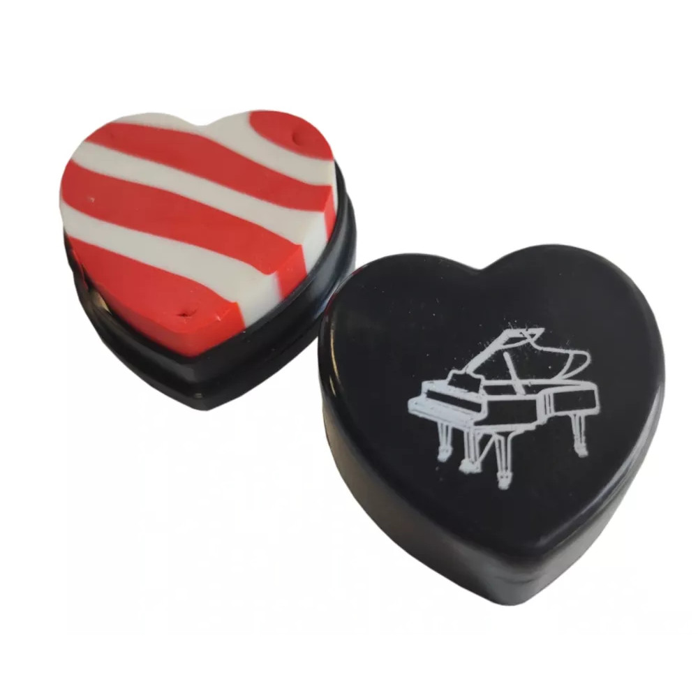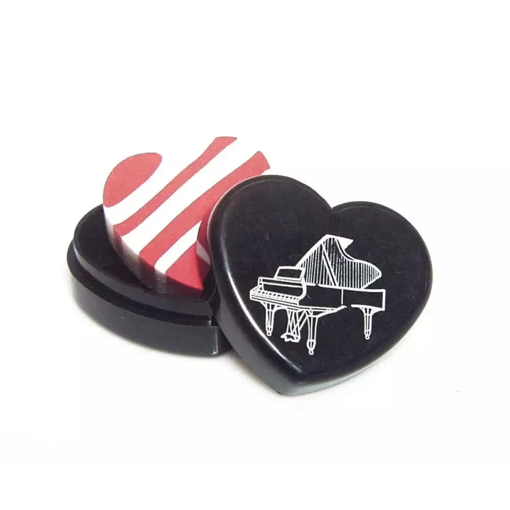 Pecka PPT-G103 je guma na gumování v černé plastové krabičce ve tvaru srdce s hudebním motivem klavíru.