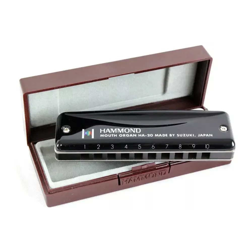 Suzuki Hammond HA-20 je luxusní, diatonická foukací harmonika. Je to designová verze nejpopulárnějšího profesionálního nástroje v sortimentu firmy Suzuki Promaster MR-350. Nabízí melodický a jasný tón. Má 10 kanálků, a vyrábí se v těchto laděních: C, G, A, D, E, F, Bb, B, F#, Eb, Ab, Db, Hi G a Low F. Rozměry nástroje jsou 100 x 27 x 20 mm a její hmotnost je 91 g (126 g včetně pouzdra). Má velmi odolný, chromovaný plechový kryt v černé barvě, a masivní hliníkové tělo, jazýčky jsou fosforbronzové. Součástí dodváky je i polstrované plastové pouzdro. Tento nástroj můžete použít v mnoha různých hudebních žánrech včetně blues, folku, rocku či country. Tento model nabízí jasný, ostřejší tón díky hliníkovému hřebenu, snadnou odezvu i na lehkou hru a jasný a zaměřený celkový zvuk. Díky preciznosti při výrobě všech komponent je tato harmonika jedna z nejlepších, ale cenově dostupných profesionálních harmonik. Specifikace Suzuki HA-20 Promaster Diatonická 10 kanálků Kryt: ocelový, chromovaný Tělo: hliník Jazýčky: fosforbronzové Velikost: 100 x 27 x 20 mm Hmotnost: 91 g Včetně tvrdého, plastového, polstrovaného pouzdra Ladění: G Připravil PJ