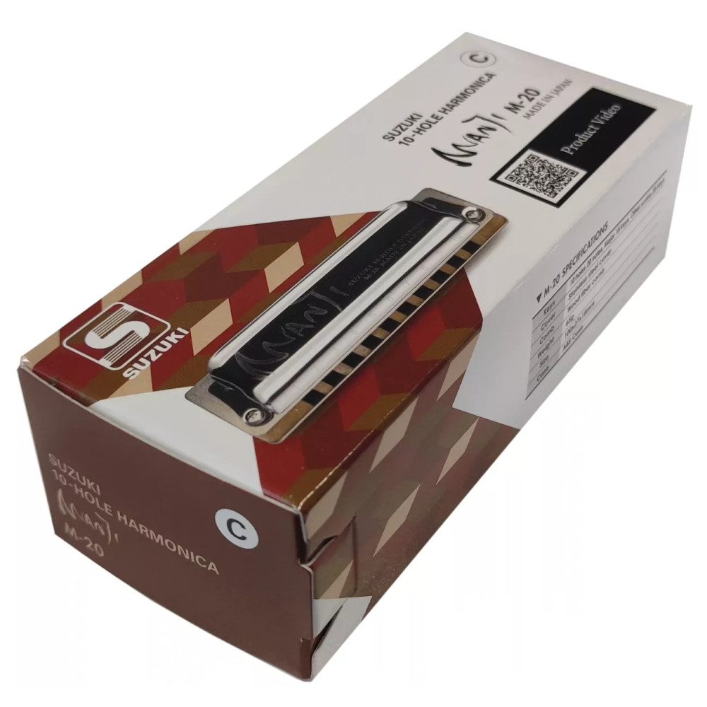 Diatonická foukací harmonika Suzuki Manji M-20 s výjimečně silným a čistý zvukem a snadným ohýbáním tónů. Vyznačuje se vynikající kvalitou a provedením. Revoluční je její kompozitový hřeben, který simuluje zvukové vlastnosti dřeva ale netrpí vlhkostí. Tento model je pojmenován po zakladateli značky Suzuki. Pan Manji Suzuki, kterému je již přes 80 let, se stále naplno věnuje své firmě, výrobě a vývoji harmonik. To, že propůjčil tomuto modelu své jméno značí, že si plně stojí za jeho vývojem a je spokojen s výsledkem. Tento model nabízí silný, hutný tón díky speciálnímu, kompozitovému hřebenu, dynamičtější tón chopný si poradit i se silnější hrou a rezonující, otevřený celkový zvuk. Skvělá odezva této harmoniky, umožňuje nástroji reagovat i na nejjemnější nuance v dechu hráče. Ladění K dispozici je široká paleta různých ladění: C, G, A, D, E, F, Bb, B, F#, Eb, Ab, Db, Hi G a Low F. Ladění nástroje je prováděno pomocí počítačem řízených laserů. Kryt těla Harmonika je vyrobena s ocelovým krytem v klasickém designu custom nástrojů. Na přání bluesových a rockových hráčů na harmoniky je zadní strana nástroje zcela otevřená a umožňuje skvělou projekci zvuku. Velké otvory na bocích nástroje umožňují hráči přímo dobře slyšet svůj nástroj. Suzuki je první výrobce harmonik, který přesunul jedinný upevňovací šroub na předek hřebenu, kde zajistí maximální tlak a tím i vzduchotěsnost nástroje. Hřeben Nástroj je vybaven revolučním kompozitovým hřebebem simulujícím vlastnosti dřeva, který však není negativně ovlivňován vlhkostí. Nabízí tak zvuk velmi podobný nástrojům s dřevěným hřebebem, ale bez obtíží spojených s vlhkostí. Výsledný zvuk je také silnější než u jiných nástrojů s plastovým hřebenem. Jazýčky a plátky Firma Suzuki si získala celosvětové uznání za přesnost a odolnost svých jazýčků. Jazýčky a plátky této harmoniky jsou fosforbronzové. Díky nově vyvinuté technologii upevnění jazýčků na plátky je dosaženo nejjemnější rozestupu mezi jazýčkem a jeho slotem mezi světovými výrobci. Precizně vyvinuté profily a délky jazýčků se také podílejí na silnějším a plnějším zvuku s možností snadného ohýbání tónů a s delší životností. Náhradní plátky lze v našem eshopu dokoupit samostatně pod označením RP-M-20 Manji v mnoha různých laděních. Příslušenství Součástí nástroje je kvalitní a odolné, polstrované plastové pouzdro, návod na péči o nástroj a tabulka tónů. Harmoniky Suzuki Manji lze zakoupit také ve dvou setech, v durových Low laděních a v různých mollových, country a seventh laděních. Set M-20-3SET obsahuje tři harmoniky v laděních C, G, A v luxusním pevném tvarovaném pouzdře. Set M-20-7SET obsahuje sedm harmonik v laděních C, G, A, D, E, F a Bb v parádním látkovém pouzdře 10HC-8. Hráči na Manji SuzukiBilly Branch (USA)Jason Ricci (USA)Brandon Oneal Bailey (USA)Filip Jers (Švédsko) VideoVideo recenze a semináře o harmonice Manji Suzuki najdete například zde: https://www.youtube.com/watch?v=aXbjnFtdY8o https://www.youtube.com/watch?v=QjojKRAX1jw https://www.youtube.com/watch?v=0Jv8hZXiScc&t=2s Připravil PJ