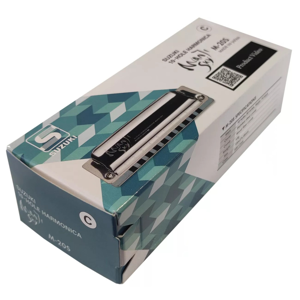 Suzuki M-20S Manji Sky v ladění G je diatonická harmonika pro hráče blues a rocku, kteří chtějí hrát rytmické akordy, rychlé fráze a pro ty, kteří mají problémy s ohýbáním tónů. Může se pochlubit speciálně nově vyvinutými plátky, které z ní dělají nejméně náročnou harmoniku na dech a tím umožńují rychlou bezproblémovu hru. Má 10 kanálků, 20 zvuků. Harmonika je vyrobena s ocelovým krytem a unikátním kompozitovým hřebenem simulujícím vlastnosti dřeva v modré barvě. Jazýčky jsou fosforbronzové. Rozměry nástroje jsou 100 x 27 x 18 mm, a hmotnost je 65 g (109 g včetně plastového pouzdra). Nabízí zcela opačnou charakteristiku zvuku i hratelnosti než starší sestra M-20 Manji - tedy úžasný zvuk i odezvu i při velmi jemném foukání. LaděníK dispozici je široká paleta různých ladění: C, G, A, D, E, F, Bb, B, F#, Eb, Ab, Db, Hi G a Low F. Ladění nástroje je prováděno pomocí počítačem řízených laserů. Kryt těla Harmonika je vyrobena s ocelovým krytem v klasickém designu custom nástrojů. Na přání bluesových a rockových hráčů na harmoniky je zadní strana nástroje zcela otevřená a umožňuje skvělou projekci zvuku. Velké otvory na bocích nástroje umožňují hráči přímo dobře slyšet svůj nástroj. Suzuki je první výrobce harmonik, který přesunul jedinný upevňovací šroub na předek hřebenu, kde zajistí maximální tlak a tím i vzduchotěsnost nástroje. Hřeben Nástroj je vybaven revolučním kompozitovým hřebebem simulujícím vlastnosti dřeva, který však není negativně ovlivňován vlhkostí. Nabízí tak zvuk velmi podobný nástrojům s dřevěným hřebebem, ale bez obtíží spojených s vlhkostí. Výsledný zvuk je také silnější než u jiných nástrojů s plastovým hřebenem. Jazýčky a plátky Firma Suzuki si získala celosvětové uznání za přesnost a odolnost svých jazýčků. Jazýčky a plátky této harmoniky jsou fosforbronzové a jsou speciálně nově vyvinuté, aby harmonika nabídla nejmenší nároky na dech a tím umožnila rychlou bezproblémovu hru a to včetně snadného ohýbání tónů. Náhradní plátky lze v našem eshopu dokoupit samostatně pod označením RP-M-20S Manji v mnoha různých laděních. Příslušenství Součástí nástroje je kvalitní a odolné, polstrované plastové pouzdro, návod na péči o nástroj a tabulka tónů. Specifikace M-20S Manji Sky Diatonická foukací harmonika 10 kanálků Ladění: G Kryt: ocelový Hřeben: kompozit Plátky: mosazné, 0,9 mm Jazýčky: fosforbronzové Pouzdro: plastové Rozměry nástroje: 100 x 27 x 18 mm Hmotnost 65 g (109 g včetně pouzdra) Náhradní plátky lze zakoupit pod označením RP-M-20S Manji Výroba: Japonsko Připravil PJ