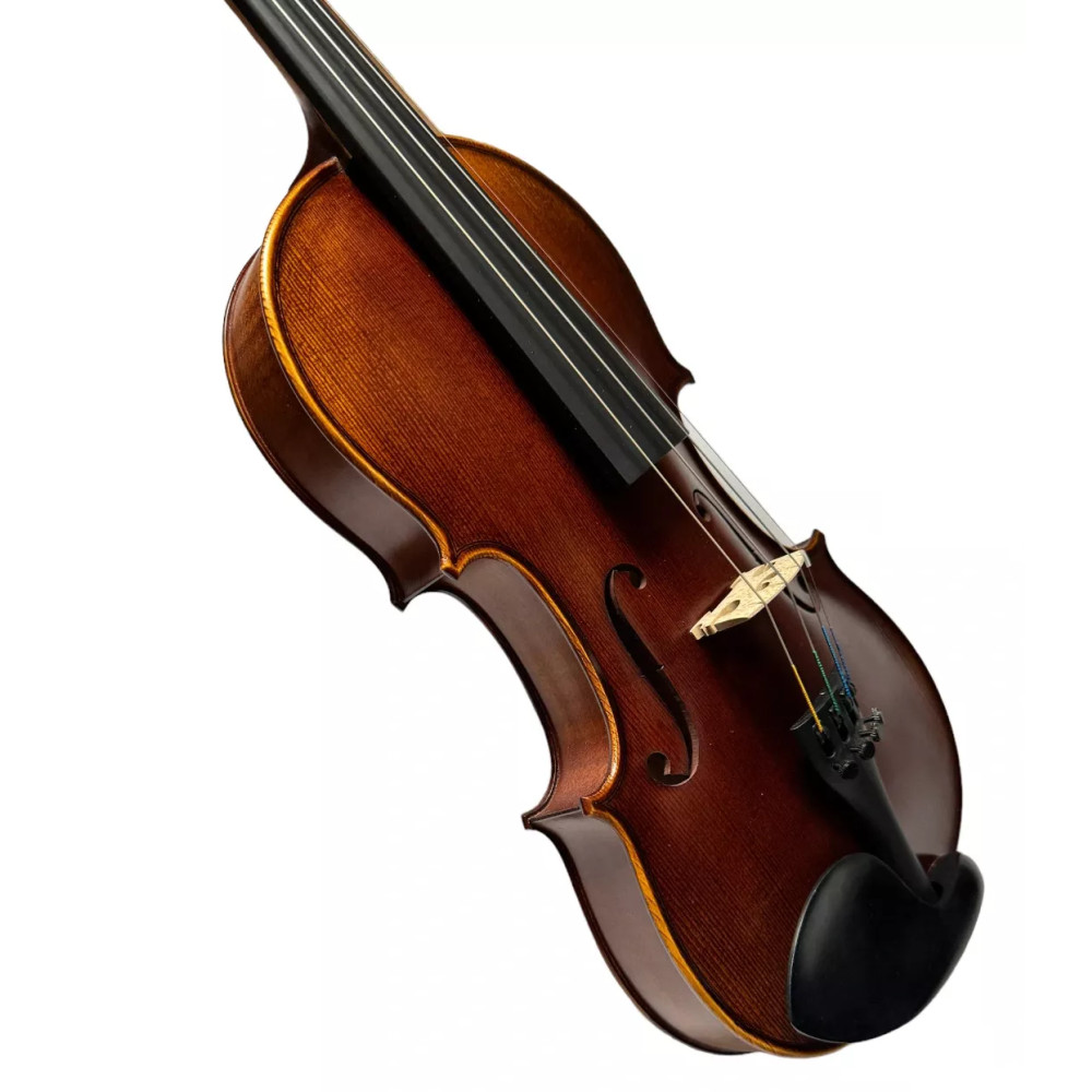 Rácz Student 2024 4/4 SET je houslový komplet, který je určen pro začínající i pokročilé studenty v celé, tedy 4/4 velikosti. Modelová řada Student je ručně vyrobena z pečlivě vybraného, dobře vysušeného karpatského žíhaného javoru, který je použit na zadní desku, krk a luby houslí. Vysoce kvalitní alpský smrk se používá na vrchní desku. Hmatník, kolíky a podbradek jsou z ebenu. Nástroje jsou lakovány tradičním lihovým lakem ve kaštanově hnědých odstínech, který zvýrazňuje kresbu dřeva a nástroj chrání před vnějšími vlivy. Struník je značky Wittner. Má v sobě integrované dolaďovací, čímž usnadňuje ladění i méně zkušeným hráčům a studentům. Francouzský model kobylky Aubert zdůrazňuje vysokou kvalitu nástroje. Jako standard pro tento model houslí jsou použity struny Alphayue od společnosti Thomastik-Infeld. Syntetické jádro strun zajišťuje rychlou odezvu při hře smyčcem a stabilní ladění. Žáci a studenti navíc ocení snadnou hratelnost a měkkost struny, při zachování zvučnosti a bohatosti tónu. Tento nástroj je ideální volbou pro začínající i pokročilé hudebníky, kteří hledají dobře hratelný nástroj vyrobený z kvalitních komponent a materiálů. Specifikace Houslový komplet Velikost: 4/4 Horní deska: masivní alpský smrk Spodní deska a luby: masivní karpatský žíhaný javor Krk: masivní karpatský žíhaný javor Kobylka: Aubert Podbradek: eben Hmatník: eben Kolíky: eben Struník: Wittner Dolaďovače: 4 Provedení: lihový lak, kaštanově hnědé Smyčec: ano Pouzdro: ano Struny: Thomastik-Infeld Alphayue Připravil PJ