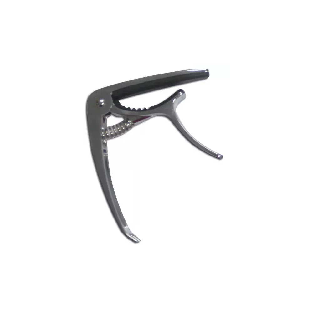 Kovový masivní kapodastr pro akustické kytary. Stříbrné matné provedení, pákový.
