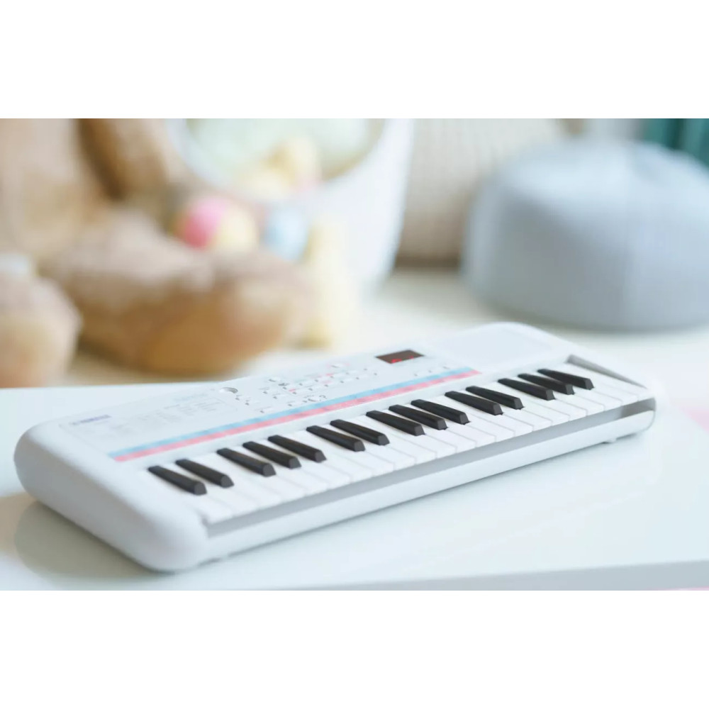 Yamaha PSS E30 Remie - začněte s úsměvemDigitální keyboard pro nejmenší hráče. Kvalitní klaviatura s 37 mini klávesami (HQ mini), 47 zvuky nejrůznějších hudebních nástrojů a 74 zvukovými efekty a 28 doprovodnými styly. Ideální pro učení nových zvuků je funkce Quiz Mode - Guess the Sound! Nástroj nabízí funkce jako je sustain, metronom a další. Vždy slyšet budete díky vestavěnému reproduktoru. Pro tiché cvičení můžete využít sluchátkový výstup. Tento malý a lehký nástroj můžete také vzít kamkoliv s sebou díky funkci napájení bateriemi. Yamaha PSS E30 je zkrátka začátek něčeho speciálního. Mini velikost - velké možnostiNástroj PSS E30 je malý, lehký a kompaktní nástroj, který je stvořen pro snadné přenášení. Můžete ho vzít kamkoliv s sebou a hrát kdykoliv vás napadne. Vysoce kvalitní mini klaviatura nabízí 37 kláves, které se přesně hodí pro dětské ruce. Remie přes svoji malou velikost ale obsahuje množství kvalitních zvuků, zvukových efektů, doprovodů a dalších funkcí, díky kterému vás jistě mile překvapí. ZvukNástroj PSS E30 Remie disponuje 32hlasou polyfonií a 47 zvukovými rejstříky, navíc je zde i 74 zvukových efektů. Můžete si tedy být jisti, že váš malý, začínající muzikant si s tímto nástrojem užije opravdu spoustu zábavy. O to, aby vaše hra byla vždy slyšet se stará vestavěný reproduktor o výkonu 1,4 W a velikosti 8 cm.Zvuky můžete doplnit i funkci Panel Sustain, tedy vestavěným Sustainem, po jehož aktivaci budou tóny déle doznívat, jako po sešlápnutí klavírního pedálu. DoprovodyTento maličký nástroj v sobě dále ukrývá i 28 automatických doprovodných stylů. Vaše hra tedy bude znít jako byste hráli se skutečnou kapelou!Využít můžete také dva typy prstokladů, které automatické doprovody spouští - Smart Chord a Multi Chord.Cvičit můžete také s vestavěným a tempově nastavitelným metronomem. PísněV PSS E30 najdete i 30 přednastavených skladeb, které mohou děti poslouchat a učit se je a tím tak rozvíjet své hudební nadání. Kvíz - uhodni zvuk!PSS E30 není jen nástroj plný zabavy, ale můžete se s ním dokonce i učit spoustu nových věcí, které se vám na vaší hudební cestě budou jistě hodit. První zábavná část kvízového režimu spočívá v tom, že nástroj přehraje náhodný zvukový efekt a vy musíte uhodnout, o který zvuk se jedná (nad klávesami jsou vyobrazené obrázky, takže když se např. ozve zvuk zakokrhání, musíte stisknout klávesu, nad kterou je obrázek kohouta). Další část kvízového režimu je již trochu náročnější. Nástroj přehraje jednoduchou meldoii a vy musíte uhodnout zvukový interval. Zkrátka a jednoduše PSS E30 je ideální na prvotní cvičení sluchu zábavnou formou. Připojte sluchátkaPro tiché a nikým nerušené cvičení můžete využít konektor pro připojení sluchátek Remie můžete vzít kamkoliv s sebouDíky napájení na baterie (nejsou součástí balení) můžete vzít PSS E30 kamkoliv s sebou a hrát v autobuse po cestě do školy, v přírodě při kempování nebo zkrátka kdekoliv, kde se Vám zlíbí. Nástroj můžete napájet i adaptérem 5 V (není součástí balení). Připravil JH