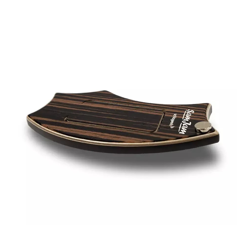 Schlagwerk SJ110 Makassar SamJam® - Guitar Snare je dokonalý perkusní nástroj, který dodá vaší kytaře ten správný groove. Díky SamJam® můžete svoji kytaru změnit na rytmický nástroj se zvukem podobným zvuku Schlagwerk cajonů. Plně využívá tělo kytary pro vytvoření plného snare zvuku. Pomocí SnareBuzzControl magnetu můžete perfektně přizpůsobit svůj SamJam® - Guitar Snare k mnoha různým tělům kytar a jejich individuálním zvukovým a vibračním charakteristikám a zabránit rušivým vibracím. Zvláštní pozornost byla věnována způsobu montáže: SamJam® - Guitar Snare se upevňuje pomocí lepidla z přírodních surovin, což znamená, že SamJam® - Guitar Snare lze odstranit z kytary jednoduše a bez stopy během několika vteřin. Připravil PJ