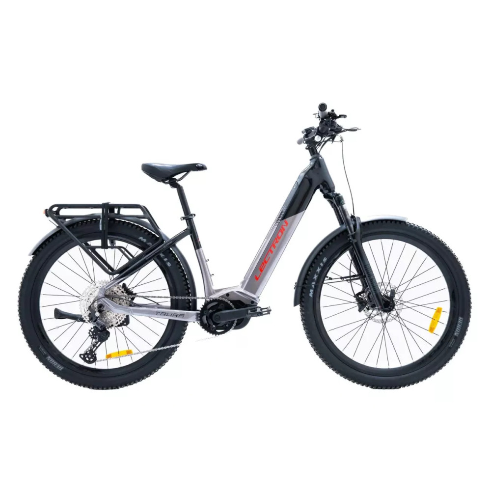Lectron Taura PSX Pro představuje ideální spojení elektrokola určeného pro rekreační jízdu terénem s jednoduchostí nastupování a komfortem městského kola. Je osazena motorem Panasonic GX Ultimate. Plně integrovaná útlá baterie s kapacitou 800 Wh poskytuje dostatek kapacity na dlouhé vyjížďky až na hranici 180km. Taura se stala synonymem pro spojení užitných vlastností horského kola s jednoduchostí nastupování a komfortem, který byl dosud dostupný jen u městských kol. Bezkonkurenční fúze příznivých vlastností staví tento model do podoby SUV elektrokola pro každodenní využití i cykloturistiku i po nezpevněných cestách. Srdcem nové řady PSX Pro je výkonný motor Panasonic GX Ultimate, s originálním softwarovým nastavením, který v mnoha parametrech převyšuje jiné motorizace. Perfektně odstupňovaná asistence s možností automatické regulace i využití maximálního výkonu motoru tak přináší skvělý zážitek ve všech jízdních režimech i prudkých stoupáních. O přenos výkonu se stará přehazovačka Shimano s 12 rychlostmi a kazetou s rozsahem 10- 51T zubů. Optimální rozsah pokrývá běžné jízdní režimy a poskytuje komfortní jízdu s pomalejší kadencí šlapání i ve vyšších rychlostech. Osvědčený devítirychlostní systém Shimano přesně řadí a má malou servisní náročnost. Taura je ideálním společníkem pro všechny typy výletů nejen po silnicích, ale i nezpevněných cestách, polních i lesních stezkách, kde už je spíše vhodné horské kolo. Všem generacím jezdců přitom poskytne trumfy v podobě maximálního komfortu, snadného nastupování i sesedání a perfektní ovladatelnosti, který by našli jen na městských kolech, ovšem velmi obtížně použitelných mimo silnice. Extrémně nízká nástupní výška, umožňuje přehodit nohu hned nad motorem vnitřkem rámu a je tak nenahraditelná i při pohybových omezeních nebo rekonvalescenci. Jízdní komfort a skvělá ovladatelnost je podtržena užitím osvědčené přední vidlice Rock Shox Recon Silver se zdvihem 120mm a zámkem. Příjemný brzdný účinek a hladký chod zajišťuje brzdový systém Shimano MT410 známý nejen svojí účinností, ale také nenáročností na údržbu. Lehký a pevný rám poskytuje snadnou možnost demontáže kol díky rychloupínacímu systému. Zárukou dlouhé životnosti jsou také precizně zpracované kliky a řetězové kolo od premiové značky Samox. Pláště Maxxis Crossmark 29 x 2,4” mají optimalizovaný dezén tak, aby poskytovaly skvělou trakci na nezpevněném povrchu, ale díky jemnějšímu vzorku i komfortní jízdu po silnici a jistotu při průjezdu zatáčkou. Dalším trumfem je baterie, která si díky použití nové generace bateriových článků v rozměrovém standardu Tesla zachovala kompaktní rozměry i malou hmotnost. Je integrována ve štíhlé linii rámu a je rovněž snadno odnímatelná. Baterie je propojená s řídícím centrem motoru a poskytuje nadstandardní kapacitu 800 Wh s dojezdem až na hranici 180km. Baterie také napájí přední i zadní světla. S kolem si tak můžete užít nejen mnohahodinový výlet, ale máte naprostou jistotu i v kopcovitém terénu nebo při dynamické jízdě, provázené větší spotřebou energie. Díky plné výbavě pevných blatníků, světel a unikátního nosiče MIK se jedná o bezkonkurenční elektrokolo, se kterým se popasujete s jakoukoliv cestou. Automobilovou terminologií jde o SUV (sportovně-užitkové vozidlo) s výbornou technologickou úrovní mezi elektrokoly v příznivé cenové relaci. Dle údajů výrobce zpracoval : IPK