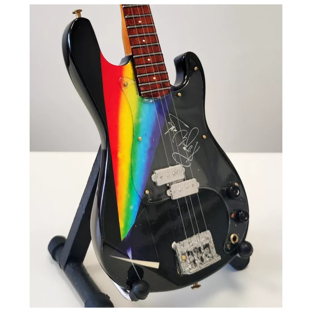 Exkluzivní miniatura kytary, vyrobená ze dřeva se všemi detaily nástroje. Krásné ruční detailní zpracování. Délka kytary cca 25 cm, šířka 7 - 9 cm. Včetně stojánku. V dárkové krabičce. Skvělý dárek na ozdobu pokoje nebo pracovního stolu pro zapáleného kytaristu. Model Pink Floyd The Dark Side of the Moon Bass.
