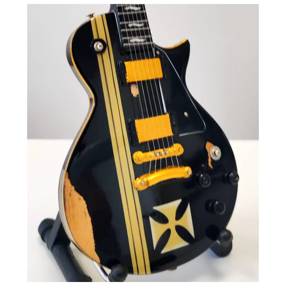 Exkluzivní miniatura kytary, vyrobená ze dřeva se všemi detaily nástroje. Krásné ruční detailní zpracování. Délka kytary cca 25 cm, šířka 7 - 9 cm. Včetně stojánku. V dárkové krabičce. Skvělý dárek na ozdobu pokoje nebo pracovního stolu pro zapáleného kytaristu. Model James Hetfield Metallica ESP Iron Cross.