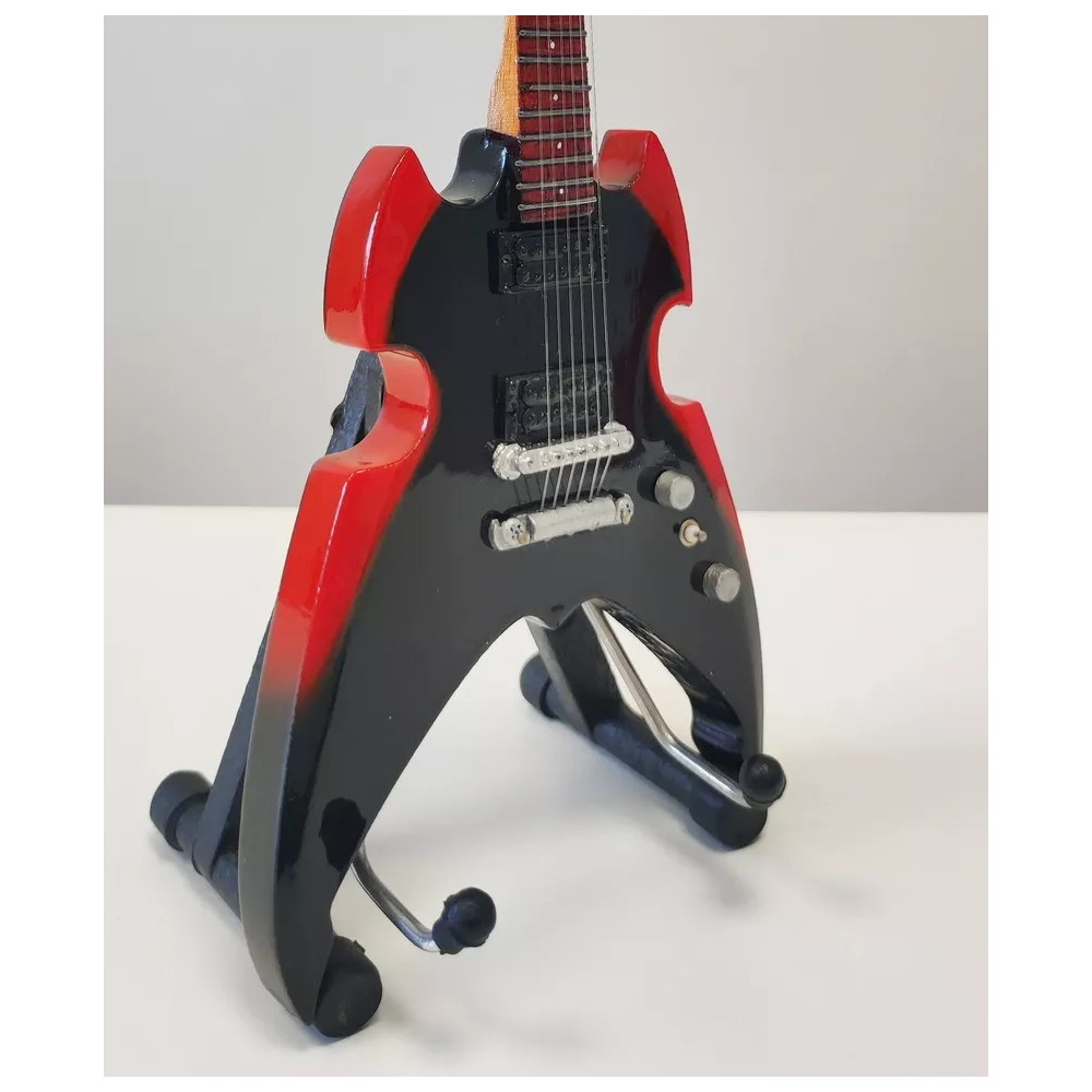 Exkluzivní miniatura kytary, vyrobená ze dřeva se všemi detaily nástroje. Krásné ruční detailní zpracování. Délka kytary cca 25 cm, šířka 7 - 9 cm. Včetně stojánku. V dárkové krabičce. Skvělý dárek na ozdobu pokoje nebo pracovního stolu pro zapáleného kytaristu. Model Paul Stanley Kiss Silvertone Apocalypse Special.