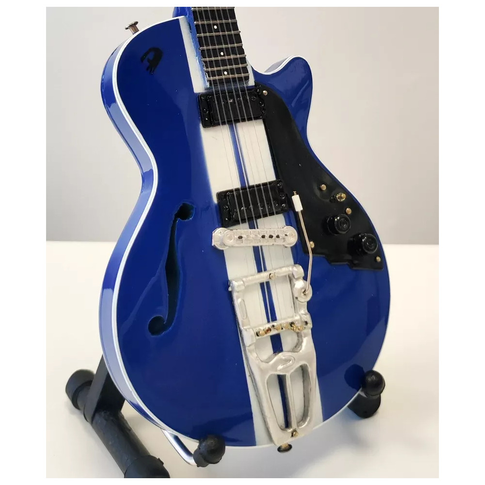 Exkluzivní miniatura kytary, vyrobená ze dřeva se všemi detaily nástroje. Krásné ruční detailní zpracování. Délka kytary cca 25 cm, šířka 7 - 9 cm. Včetně stojánku. V dárkové krabičce. Skvělý dárek na ozdobu pokoje nebo pracovního stolu pro zapáleného kytaristu. Model Eddie Vedder Pearl Jam Duesenberg Mike Campbell Signature.