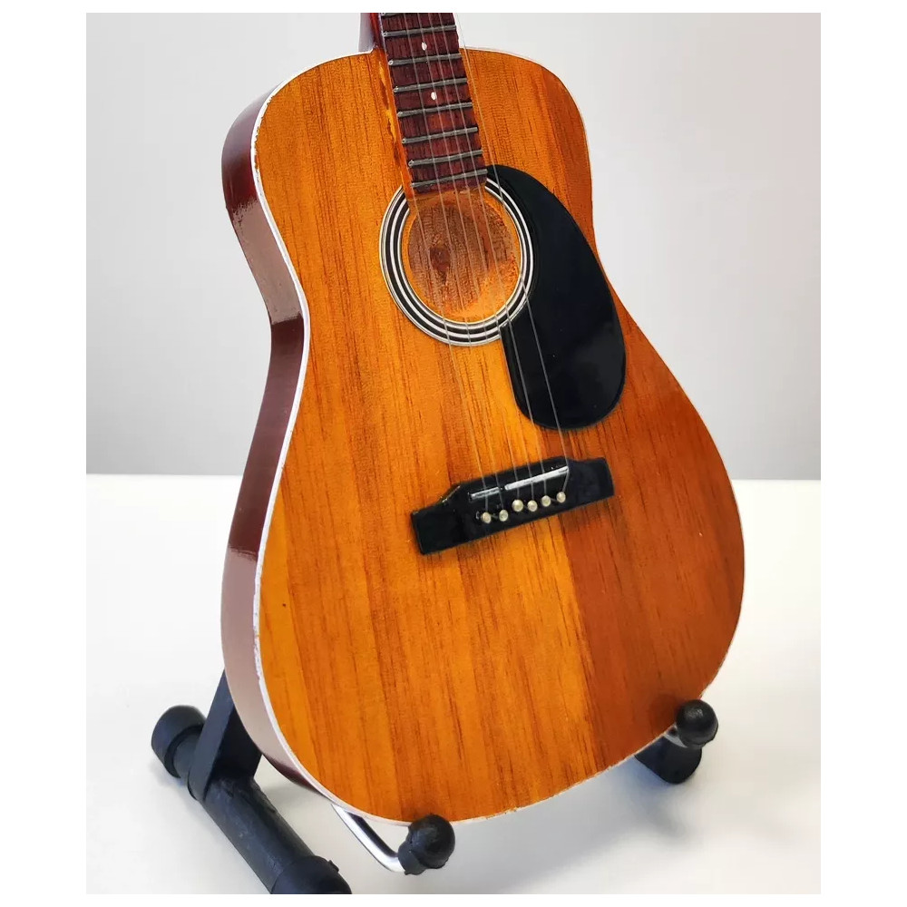Exkluzivní miniatura kytary, vyrobená ze dřeva se všemi detaily nástroje. Krásné ruční detailní zpracování. Délka kytary cca 25 cm, šířka 7 - 9 cm. Včetně stojánku. V dárkové krabičce. Skvělý dárek na ozdobu pokoje nebo pracovního stolu pro zapáleného kytaristu. Model David Gilmour Martin D-35 Custom Signature Edition.