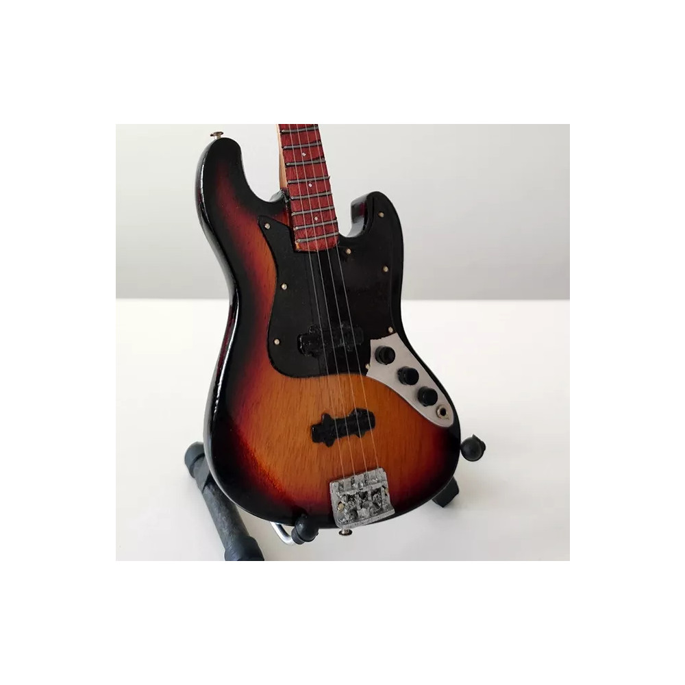 Exkluzivní miniatura kytary, vyrobená ze dřeva se všemi detaily nástroje. Krásné ruční detailní zpracování. Délka kytary cca 25 cm, šířka 7 - 9 cm. Včetně stojánku. V dárkové krabičce. Skvělý dárek na ozdobu pokoje nebo pracovního stolu pro zapáleného kytaristu. Model John Paul Jones Led Zeppelin 1962 Fender Jazz Bass.
