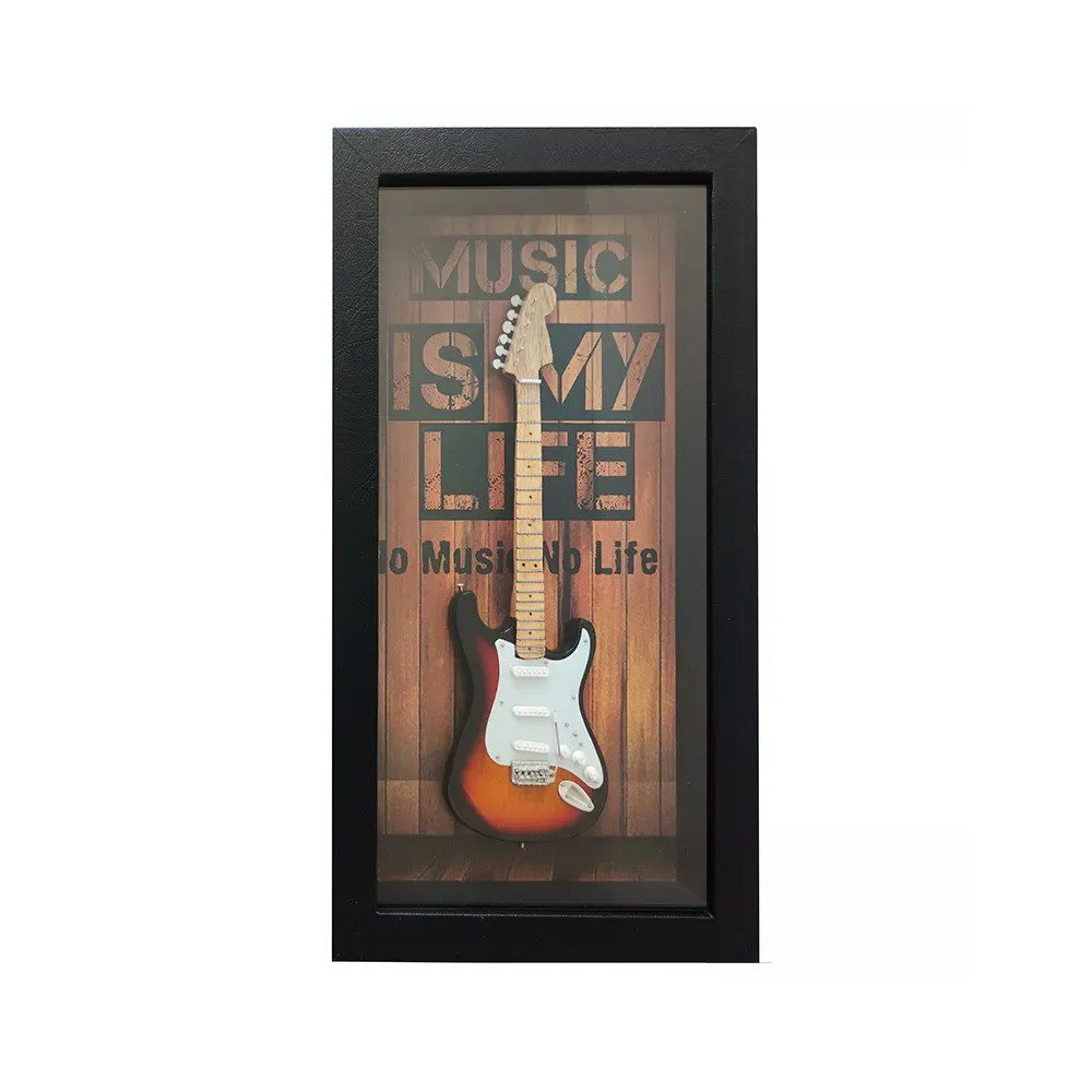 PPT-MKB008 Music Is My Life Fender American Stratocaster 3CS je exkluzivní miniatura elektrické kytary, vyrobená ze dřeva se všemi detaily nástroje v ozdobném rámečku s designovým pozadím. Krásné ruční detailní zpracování. Délka kytary cca 250 mm, šířka 70 - 90 mm, rozměry rámečku jsou 340 x 190 x 35 mm. Skvělý dárek na ozdobu pokoje nebo pracovního stolu pro zapáleného kytaristu. Model kytary je Fender American Stratocaster 3CS.