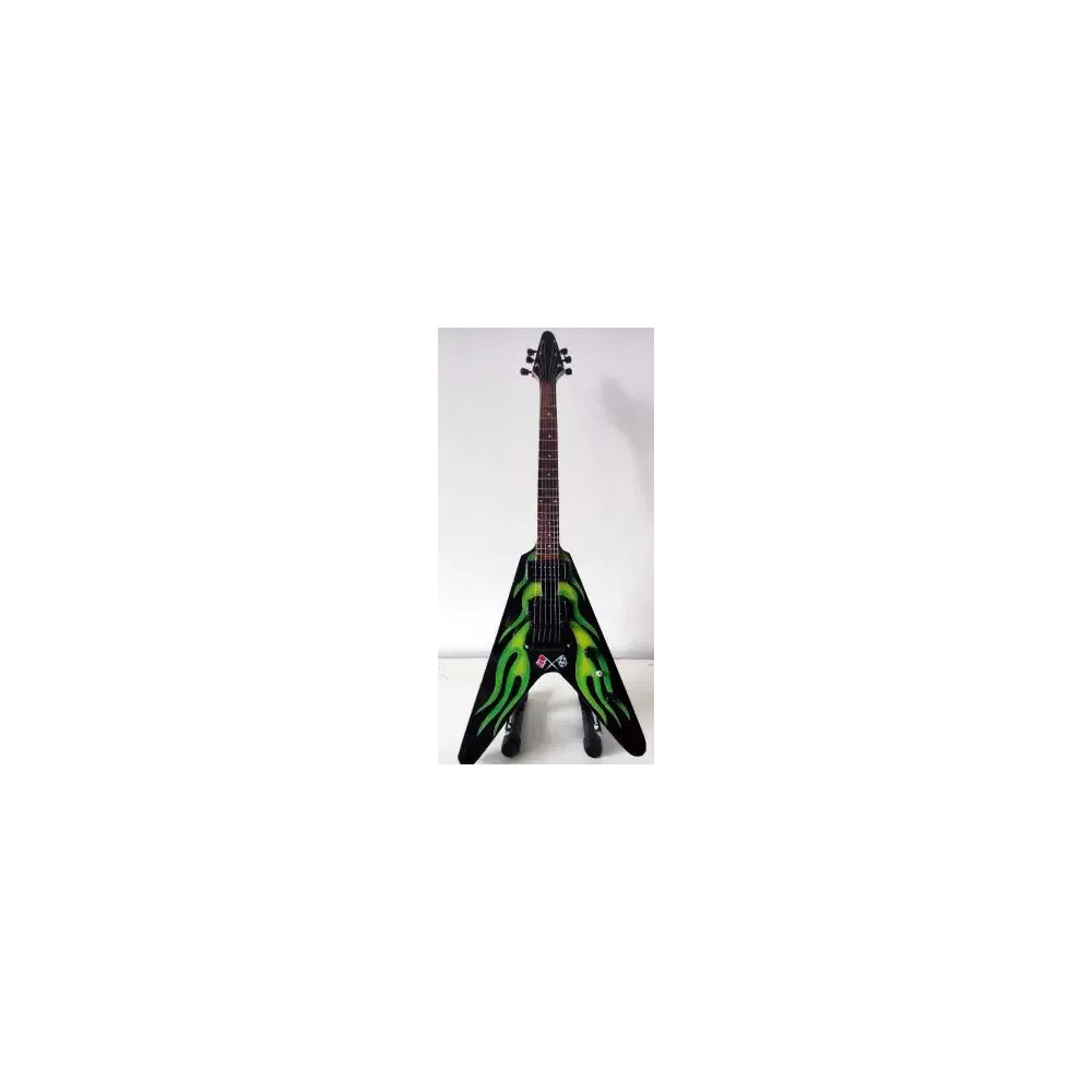 Exkluzivní miniatura elektrické kytary, vyrobená ze dřeva se všemi detaily nástroje. Krásné ruční detailní zpracování. Délka kytary cca 25 cm, šířka 7 - 9 cm. Včetně stojánku. V dárkové krabičce. Skvělý dárek na ozdobu pokoje nebo pracovního stolu pro zapáleného kytaristu. Model James Hetfield Metallica ESP JH-1 Green Flame V.