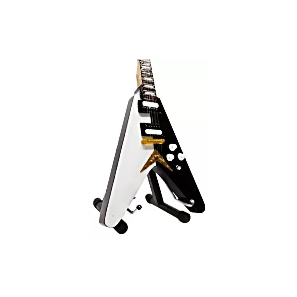 Exkluzivní miniatura kytary, vyrobená ze dřeva se všemi detaily nástroje. Krásné ruční detailní zpracování. Délka kytary cca 25 cm, šířka 7 - 9 cm. Včetně stojánku. V dárkové krabičce. Skvělý dárek na ozdobu pokoje nebo pracovního stolu pro zapáleného kytaristu. Model Michael Schenker 2004 Dean Flying V.