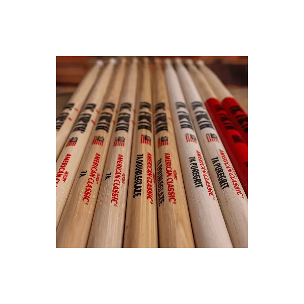 Vic Firth 7AN American Classic Nylon jsou bubenické paličky ze dřeva hickory. Jedná se o tu nejklasičtější klasiku mezi kvalitními paličkami. Délka paliček je 394 mm, průměr paličky je 13,7 mm. Vybrané hikorové dřevo je hutné s malým průhybem a zvuk je tím pádem pronikavější. Jedná se o odolné paličky schopné snést silnější údery. Špička je kapkového tvaru a paličky jsou kratší a jsou tak vhodné pro jazz, combo a další styly, kde nutný rychlý pohyb po celé sadě. Potažení špičky nylonem dodává větší čistotu zvuku při hře na činely. Vyrobeno v USA z vybraných materiálů. Připravil PJ