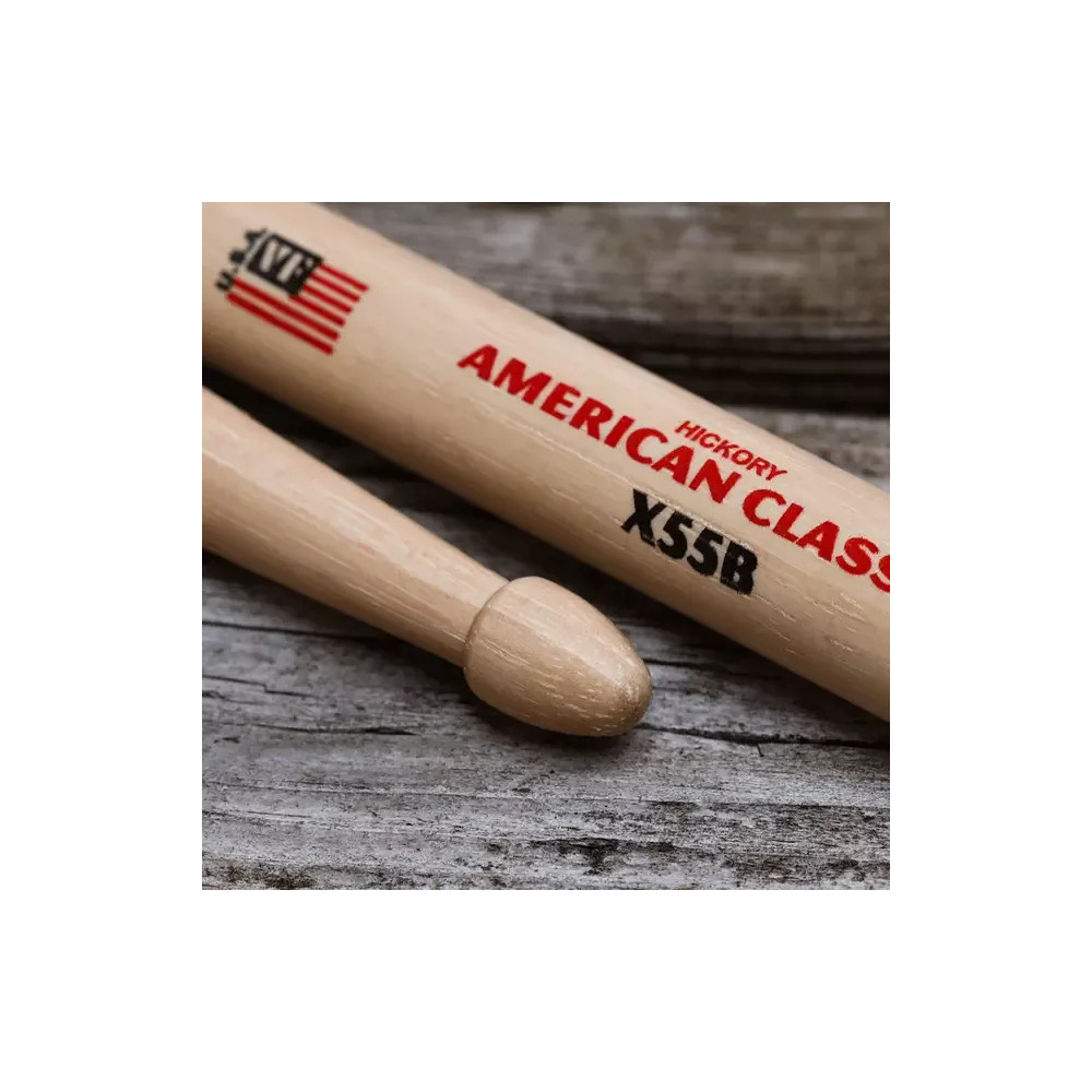 Vic Firth X55B Extreme jsou bubenicné paličky z celosvětově oblíbené série American Classic. Jsou vyrobeny z hickoru a jedná se o verzi 5B navíc se zvětšenou délkou těla o 1/2" a větším průměrem. Délka celé paličky je 419,1 mm, průměr je 15,5 mm. Krk paličky je střední. Výsledkem delšího těla paličky je lepší dosah a také větší síla úderu. Připravil PJ