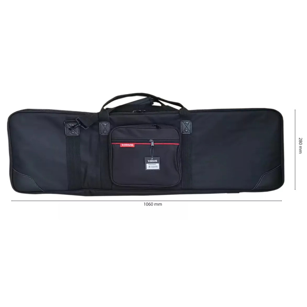 Virus VKBN61 je keyboardový (klávesový) povlak, který je vhodný pro uzší modely keyboardů (stage pian) s 61 klávesami, speciálně se perfektně hodí pro modely Yamaha Piaggero NP 12, NP 11 nebo Casio CT-S1000V, CT-S300, CT-S200, CT-S100. Nabízí velmi silné 10 mm polstrování, které spolehlivě ochrání váš nástroj před poškozením při jeho přenášení. Je vybaven masivními zipy, řemenem pro nošení přes rameno a ušima pro nošení v ruce a také externí kapsou na příšlušenství. Je vyroben v atraktivním černo-červeném designu z voděodolné látky 600D. Vnitřní rozměry pouzdra jsou 1060 x 280 x 120 mm. Spolehlivá ochrana nástrojeVáš nástroj bude díky silnému 10 mm polstrování spolehlivě ochráněn před poškozením během jeho přenášení či transportu. Odolná a spolehlivá konstrukce Povlak je vyroben z voděodolné látky 600D, s masivními zipy, a masivními kovovými přezkami, které uchycují řemen pro nošení přes rameno k povlaku. Nedojde tak k jejich prasknutí a váš nástroj je v bezpečí. Výrazný, atraktivní design Pouzdro nabízí atraktivní černo-červený design, který je nejen elegantní, ale také nenáročný na opotřebení. Na boku povlaku je umístěna externí dvojkapsa pro příslušenství. Rozměry větší kapsy jsou 270 x 250 mm, rozměry přední jsou 200 x 250 mm. PoužitíPovlak je vhodný například pro Yamaha Piaggero NP 12, NP 11 nebo Casio CT-S1000V, CT-S300, CT-S200, CT-S100, ale i další modely odpovídající jeho vnitřním rozměrům 1060 x 280 x 120 mm. Specifikace Virus VKBN61 Silné 10 mm polstrování Masivní zipy Řemen pro nošení přes rameno Uši Atraktivní černo-červený design Voděodolná látka 600D Vnitřní rozměry: 1060 x 280 x 120 mm Vnější rozměry: 1110 x 330 x 170 mm Vhodný například pro Yamaha Piaggero NP 12, NP 11 Casio CT-S1000V, CT-S300, CT-S200, CT-S100 Připravil PJ