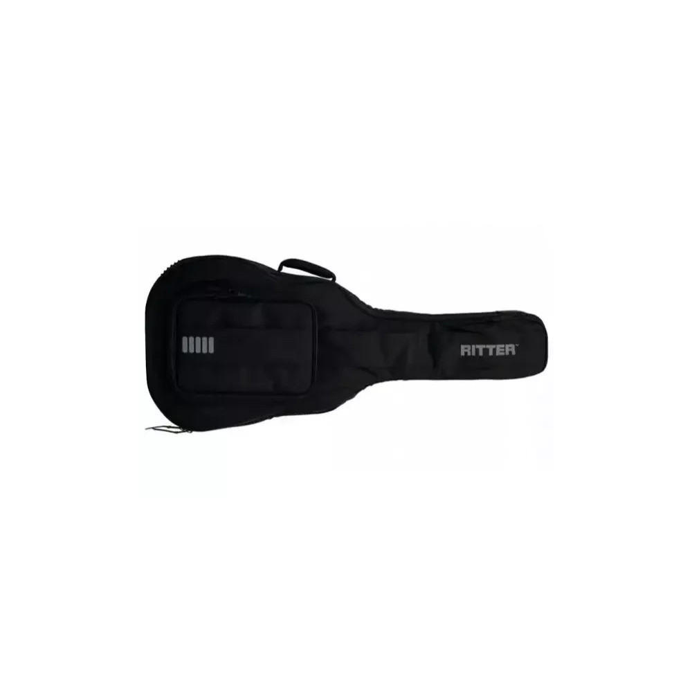 Ritter RGA5-SB/SBK – obal pro akustickou kytaru Super JumboRitter RGA5-SB/SBK je profesionální obal určený pro akustické kytary typu Super Jumbo, který zajišťuje maximální ochranu nástroje i při náročných podmínkách cestování. Patří do řady Arosa – špičkové série značky Ritter, která vyniká robustní konstrukcí, funkčním designem a prvotřídní ochranou.Obal je vyroben z voděodolného nylonu 600x600D a v kombinaci s 33mm polstrováním na všech stranách zajišťuje výbornou ochranu proti nárazům, vlhkosti a poškození. Vnitřní prostor je vybaven měkkou podšívkou, ochranou pro krk, kobylku i hlavu nástroje a systémem jejich zajištění. Spodní strana je chráněna gumovým prvkem proti oděru.Nechybí prostorná přední kapsa formátu A4 s organizérem pro tablet, laptop nebo příslušenství. Pro pohodlný přenos jsou k dispozici polstrované nastavitelné zádové popruhy a pevné boční madlo.