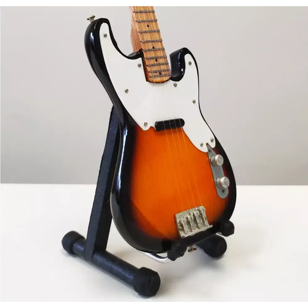 Exkluzivní miniatura elektrické baskytary, vyrobená ze dřeva se všemi detaily nástroje. Krásné ruční detailní zpracování. Délka kytary cca 25 cm, šířka 7 - 9 cm. Včetně stojánku. V dárkové krabičce. Skvělý dárek na ozdobu pokoje nebo pracovního stolu pro zapáleného kytaristu. Model Sting Police Fender Precision Bass Sunburst.