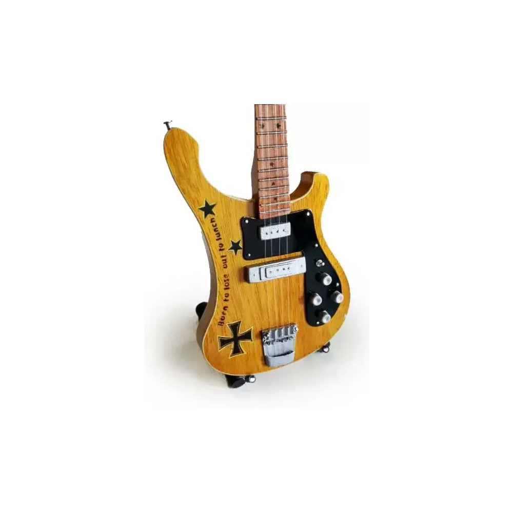 Exkluzivní miniatura kytary, vyrobená ze dřeva se všemi detaily nástroje. Krásné ruční detailní zpracování. Délka kytary cca 25 cm, šířka 7 - 9 cm. Včetně stojánku. V dárkové krabičce. Skvělý dárek na ozdobu pokoje nebo pracovního stolu pro zapáleného kytaristu. Model Lemmy Kilmister Rickenbacker 4001FL.