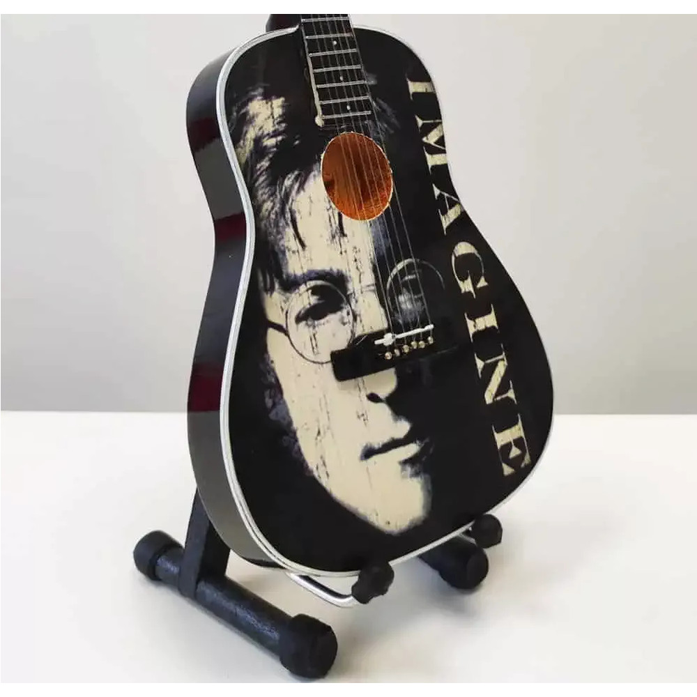 Exkluzivní miniatura kytary, vyrobená ze dřeva se všemi detaily nástroje. Krásné ruční detailní zpracování. Délka kytary cca 25 cm, šířka 7 - 9 cm. Včetně stojánku. V dárkové krabičce. Skvělý dárek na ozdobu pokoje nebo pracovního stolu pro zapáleného kytaristu. Model John Lennon The Beatles Tribute.