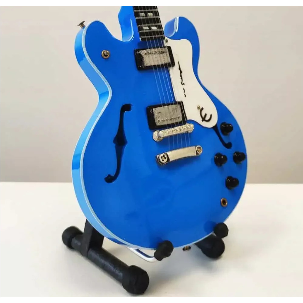 Exkluzivní miniatura kytary, vyrobená ze dřeva se všemi detaily nástroje. Krásné ruční detailní zpracování. Délka kytary cca 25 cm, šířka 7 - 9 cm. Včetně stojánku. V dárkové krabičce. Skvělý dárek na ozdobu pokoje nebo pracovního stolu pro zapáleného kytaristu. Model Noel Gallagher Oasis Epiphone Supernova Blue.